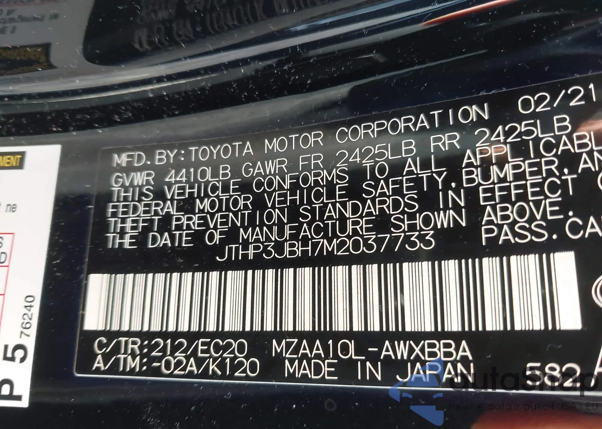 LOT: 43994332 VIN: JTHP3JBH7M2037733