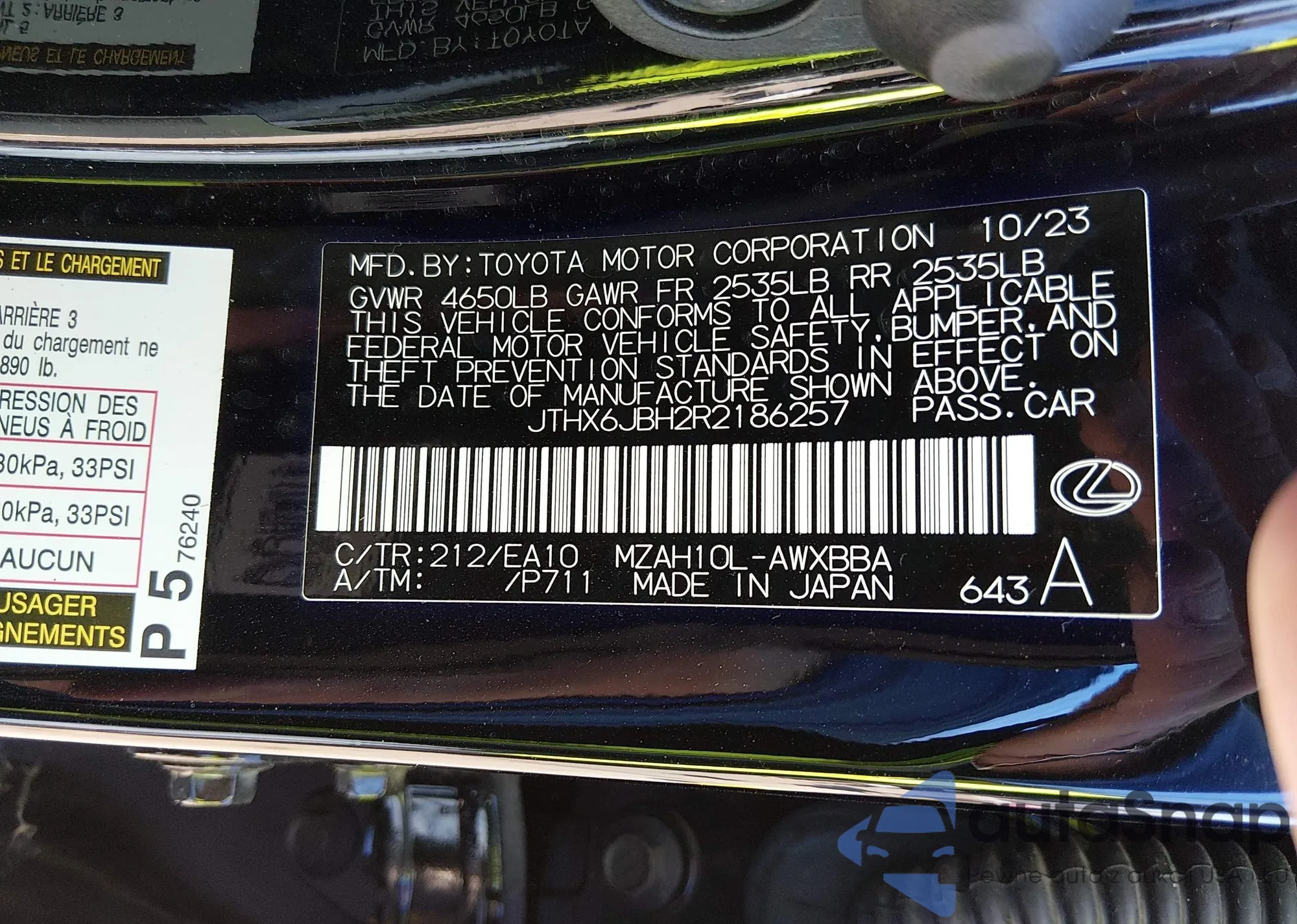 • VIN JTHX6JBH3P2133922
