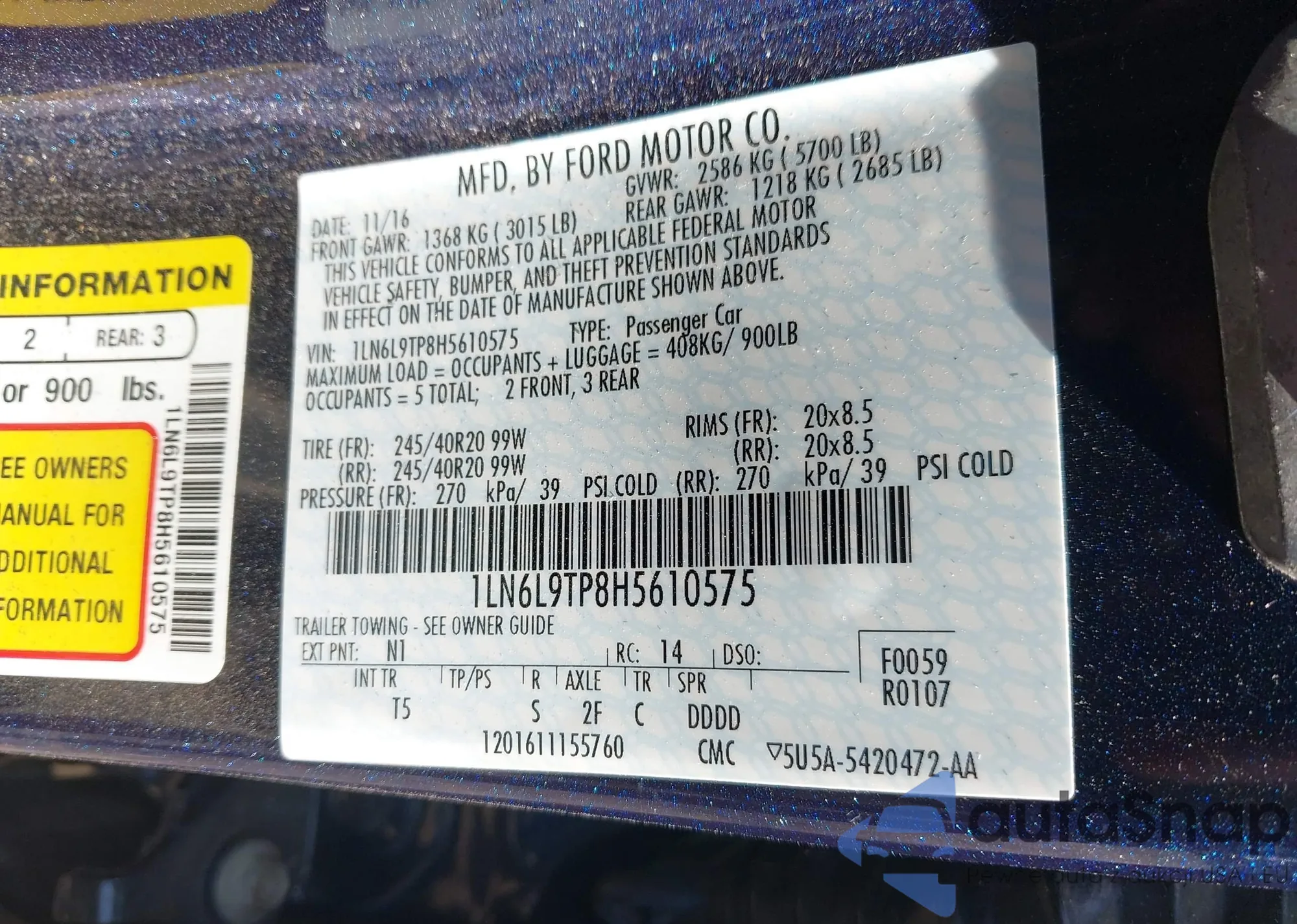 LOT: 43343136 VIN: 1LN6L9TP8H5561075