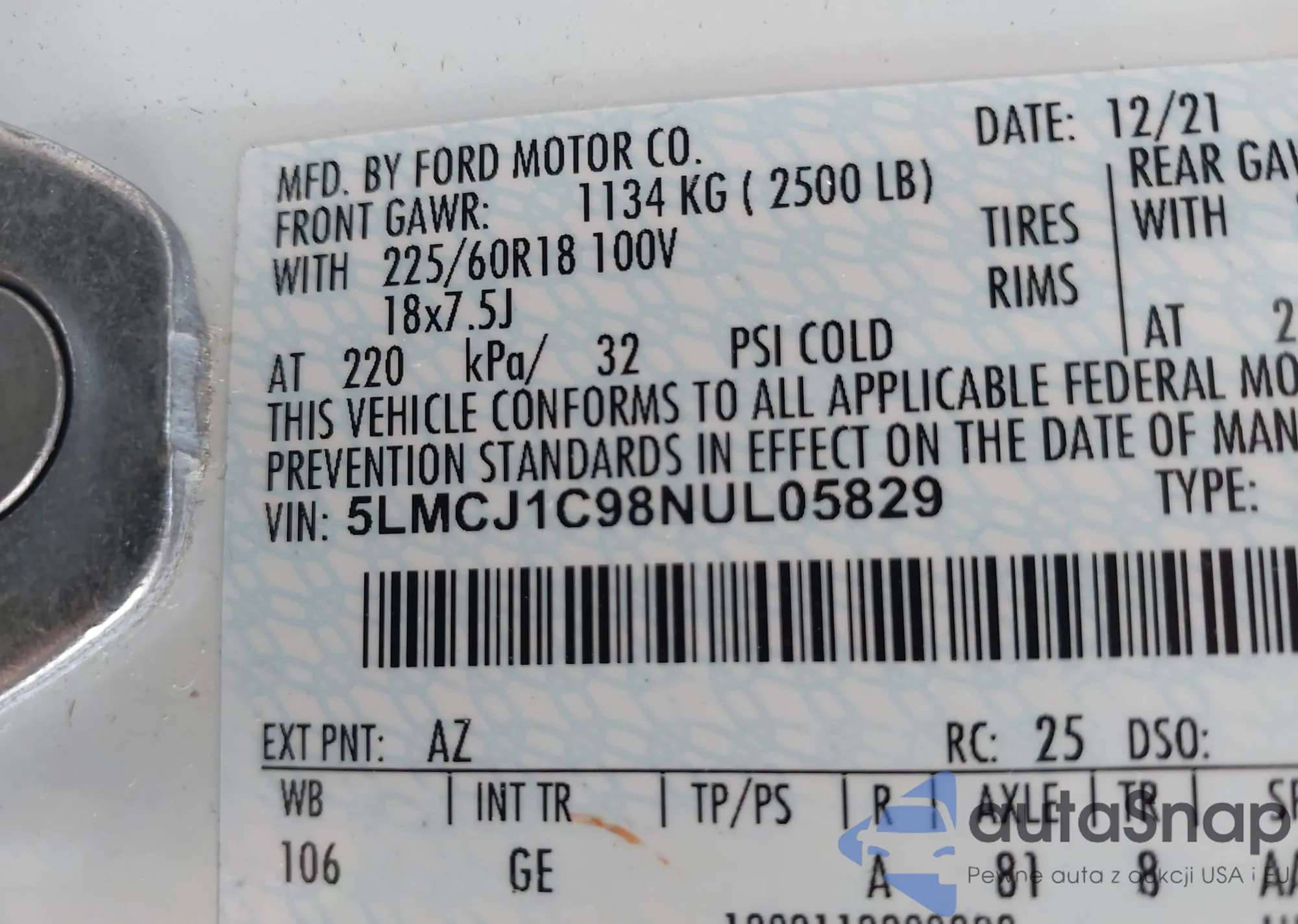 • VIN 5LMCJ1C98NUL05829