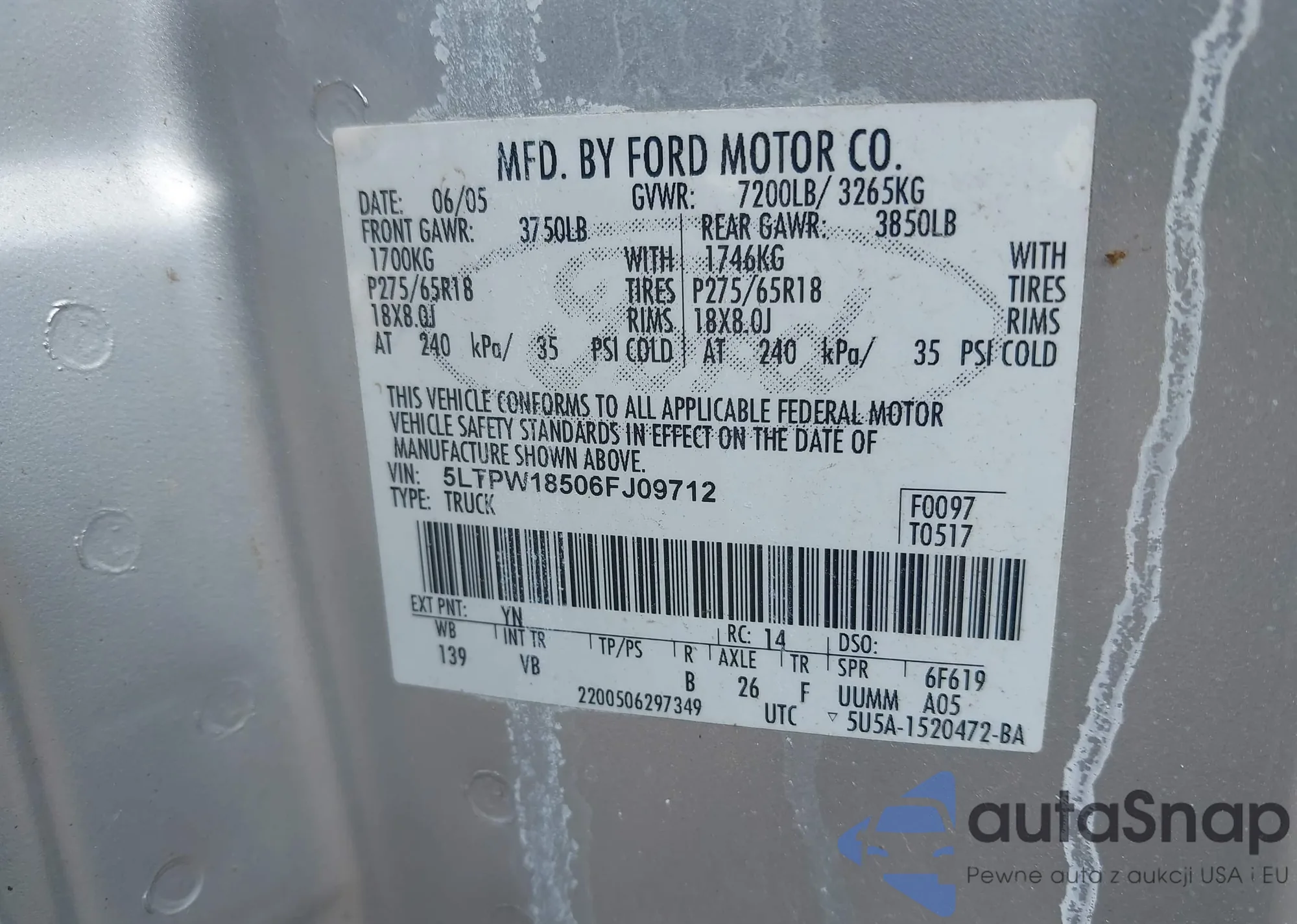 • VIN 5LTPW18506FJ09712