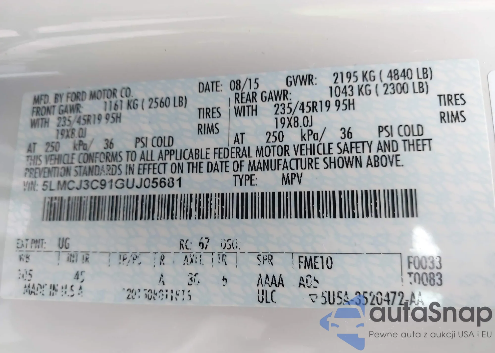 • VIN 5LMCJ3C91GUJ05681