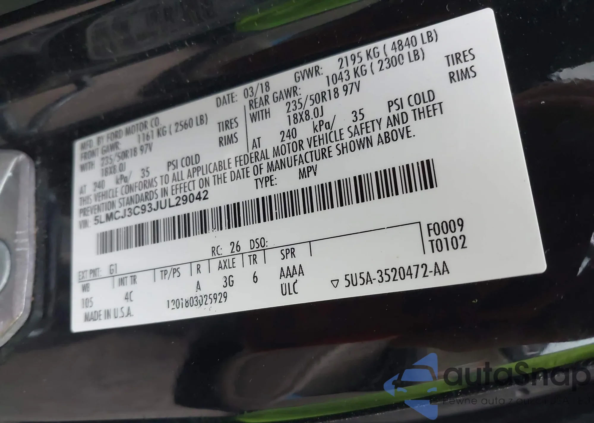 LOT: 44146161 VIN: 5LMTJ3DH8JUL21296