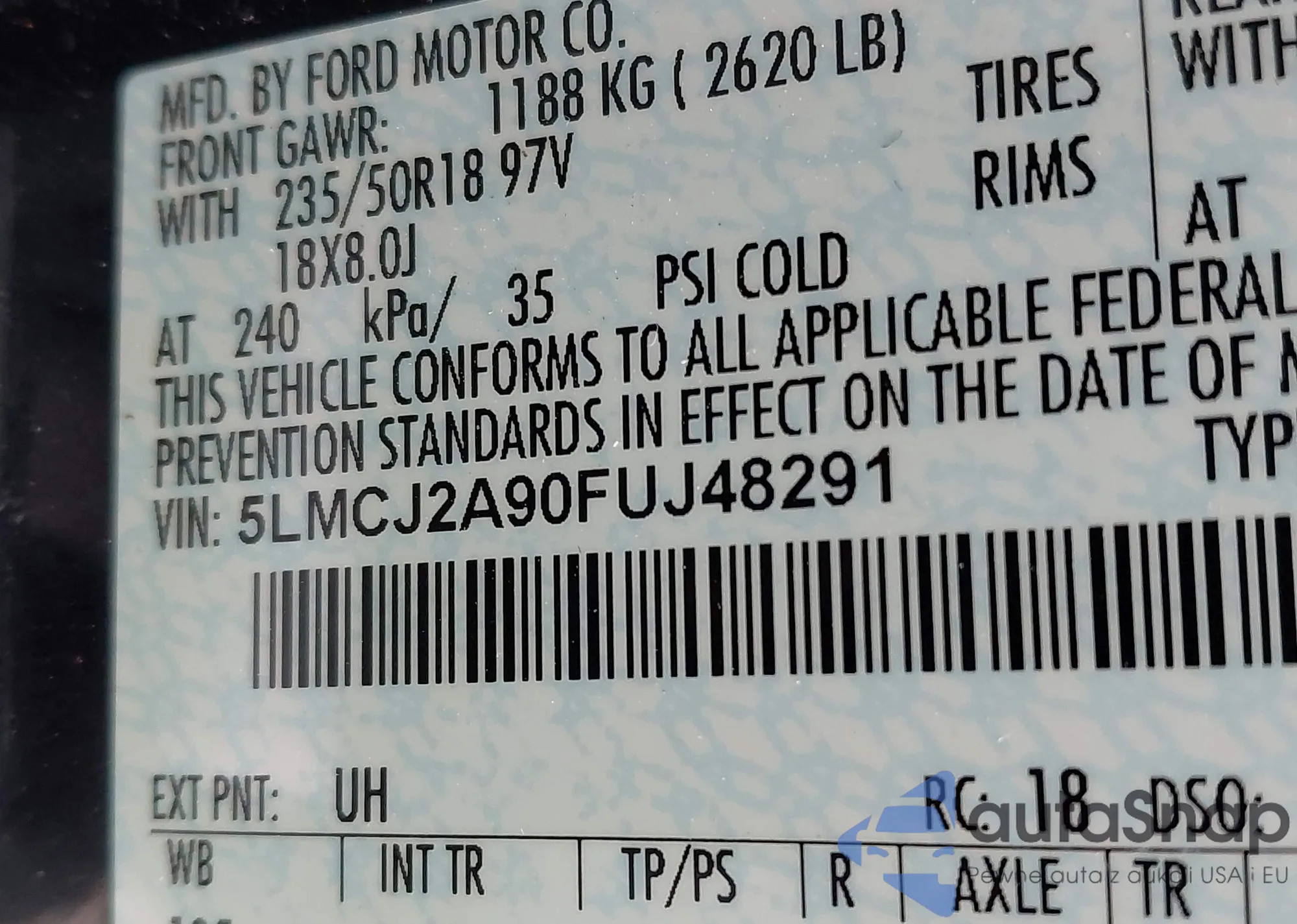 • VIN 5LMCJ2A90FUJ48291
