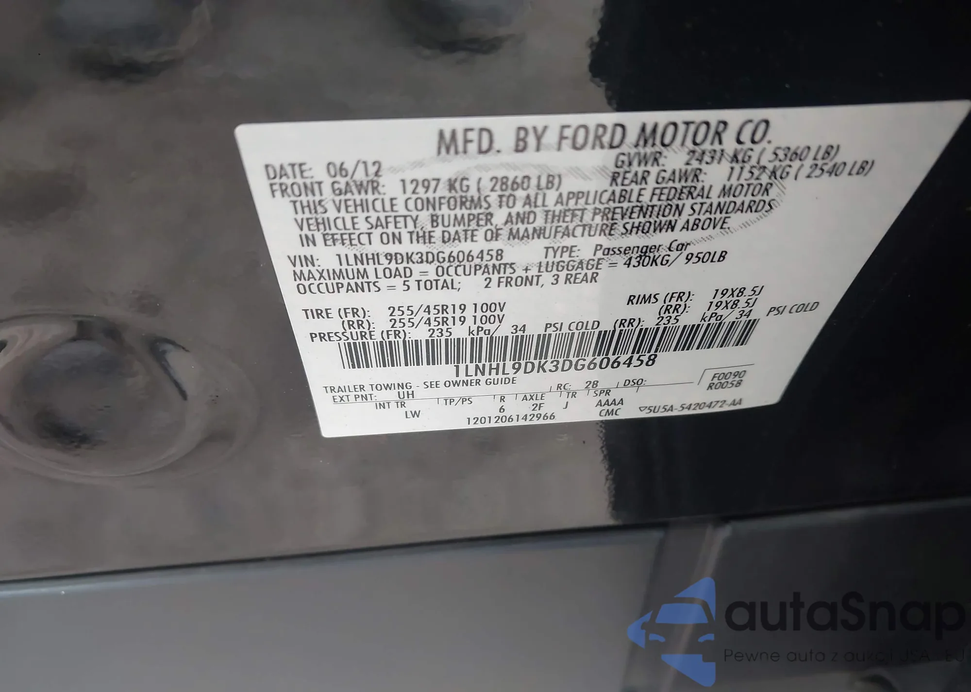 • VIN 1LNHL9DK3DG606458