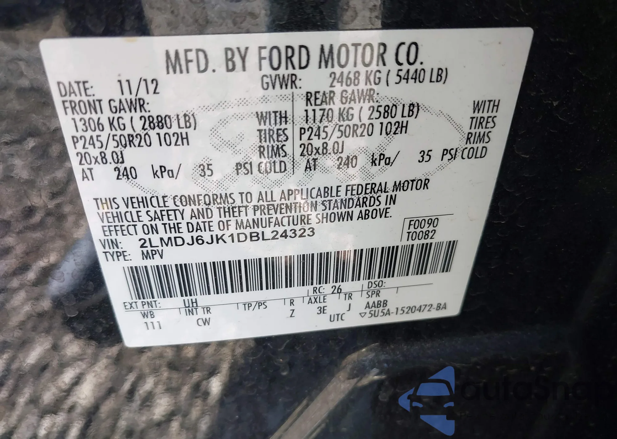 • VIN 2LMDJ6JK1DBL24323