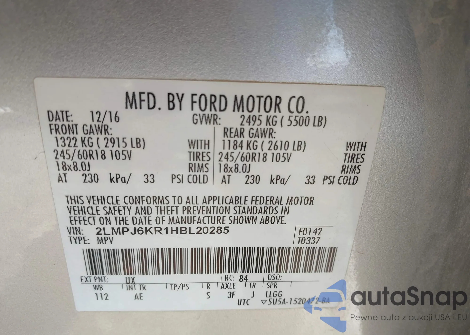 • VIN 2LMDJ8JC4ABJ02083