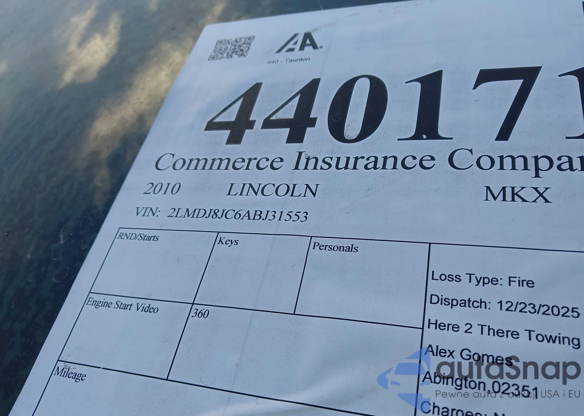 LOT: 44017195 VIN: 2LMDJ8JC6ABJ31553