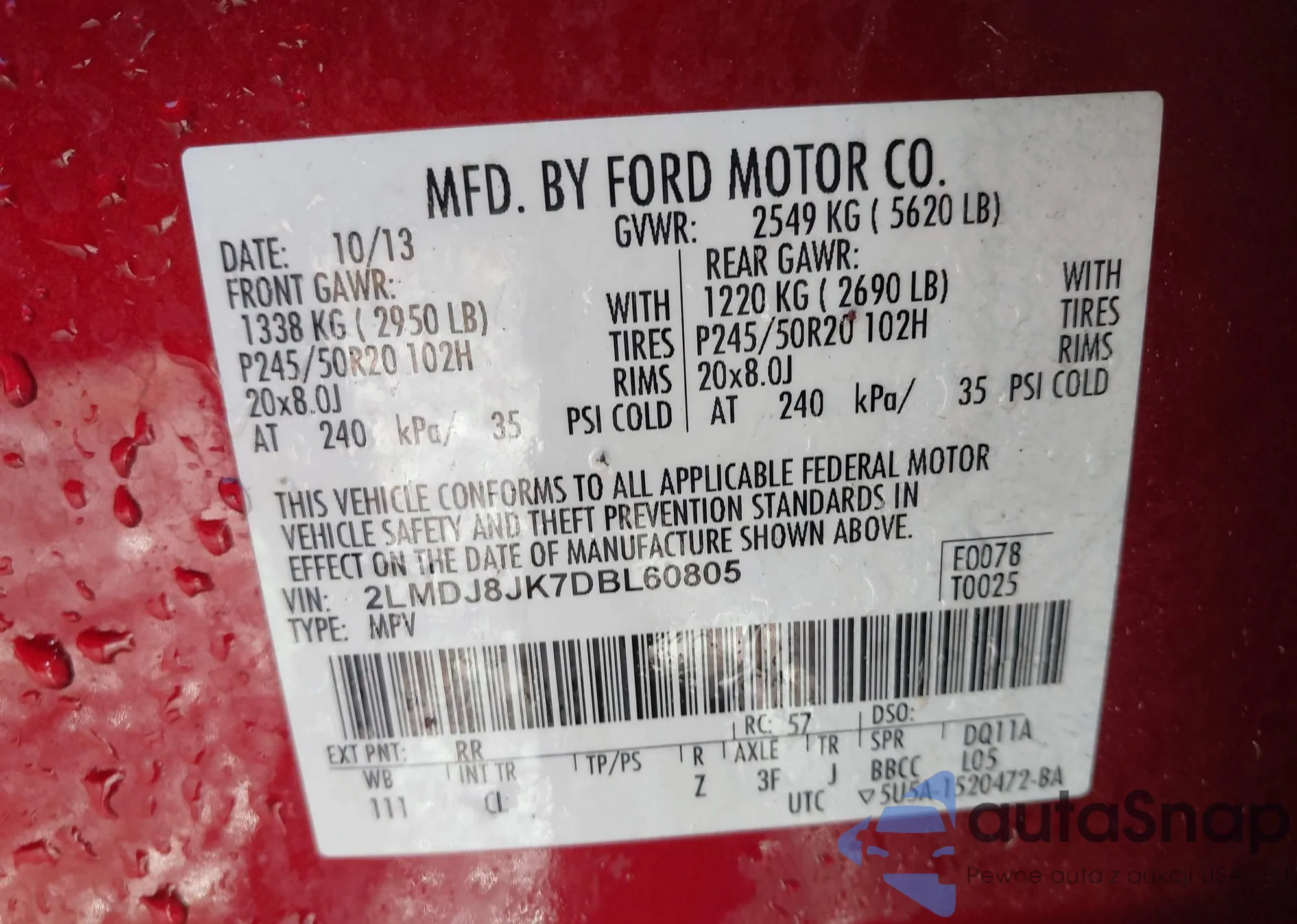 • VIN 2LMDJ8JK7DBL60805