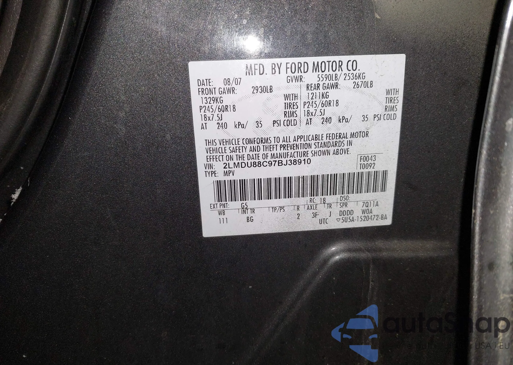 • VIN 2LMDU88C97BJ38910