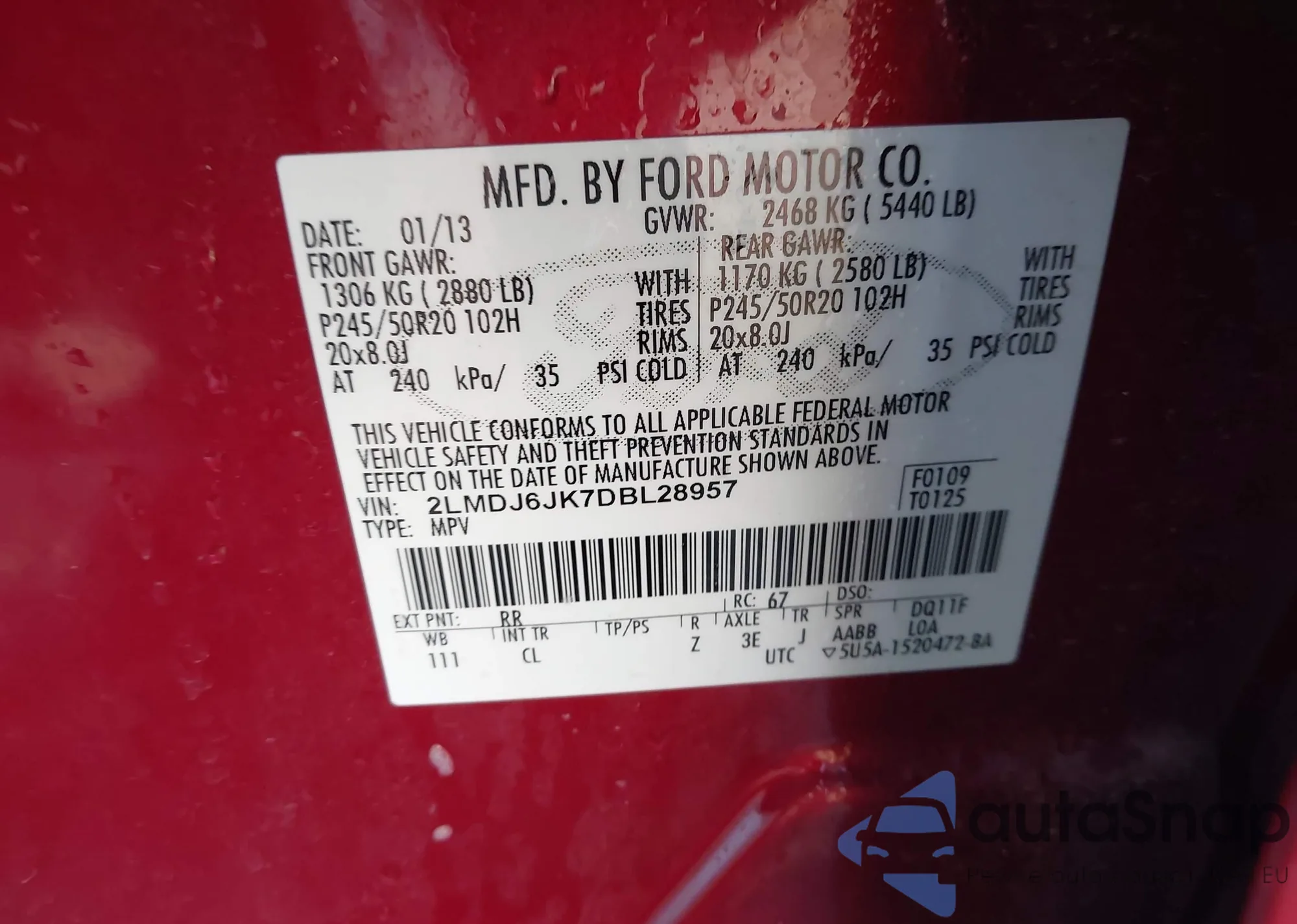• VIN 2LMDJ6JK7DBL28957