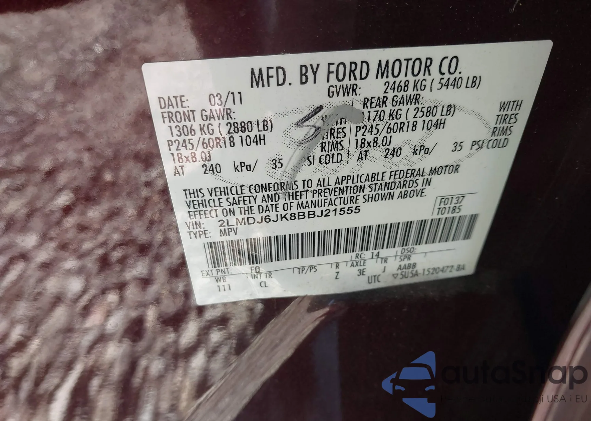 • VIN 2LMDJ6JK8BBJ21555