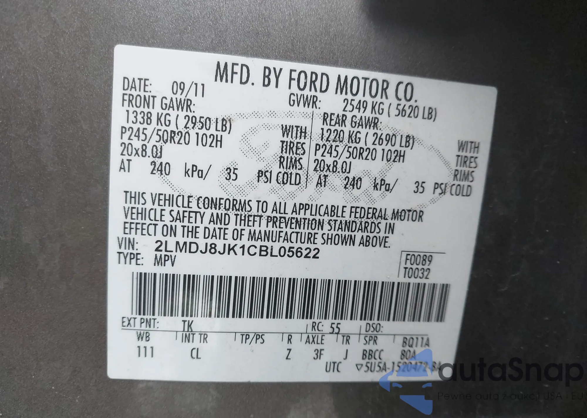 • VIN 2LMDJ8JK1CBL05622