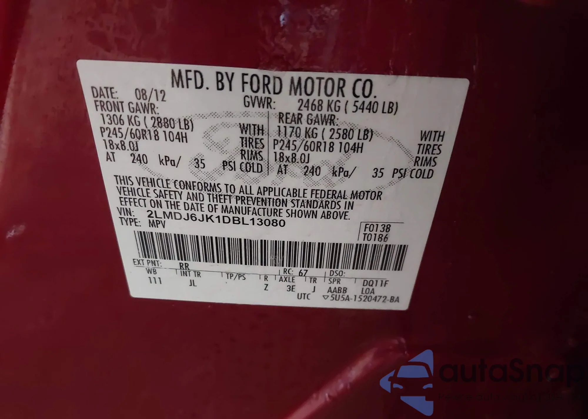 • VIN 2LMDJ6JK1DBL13080