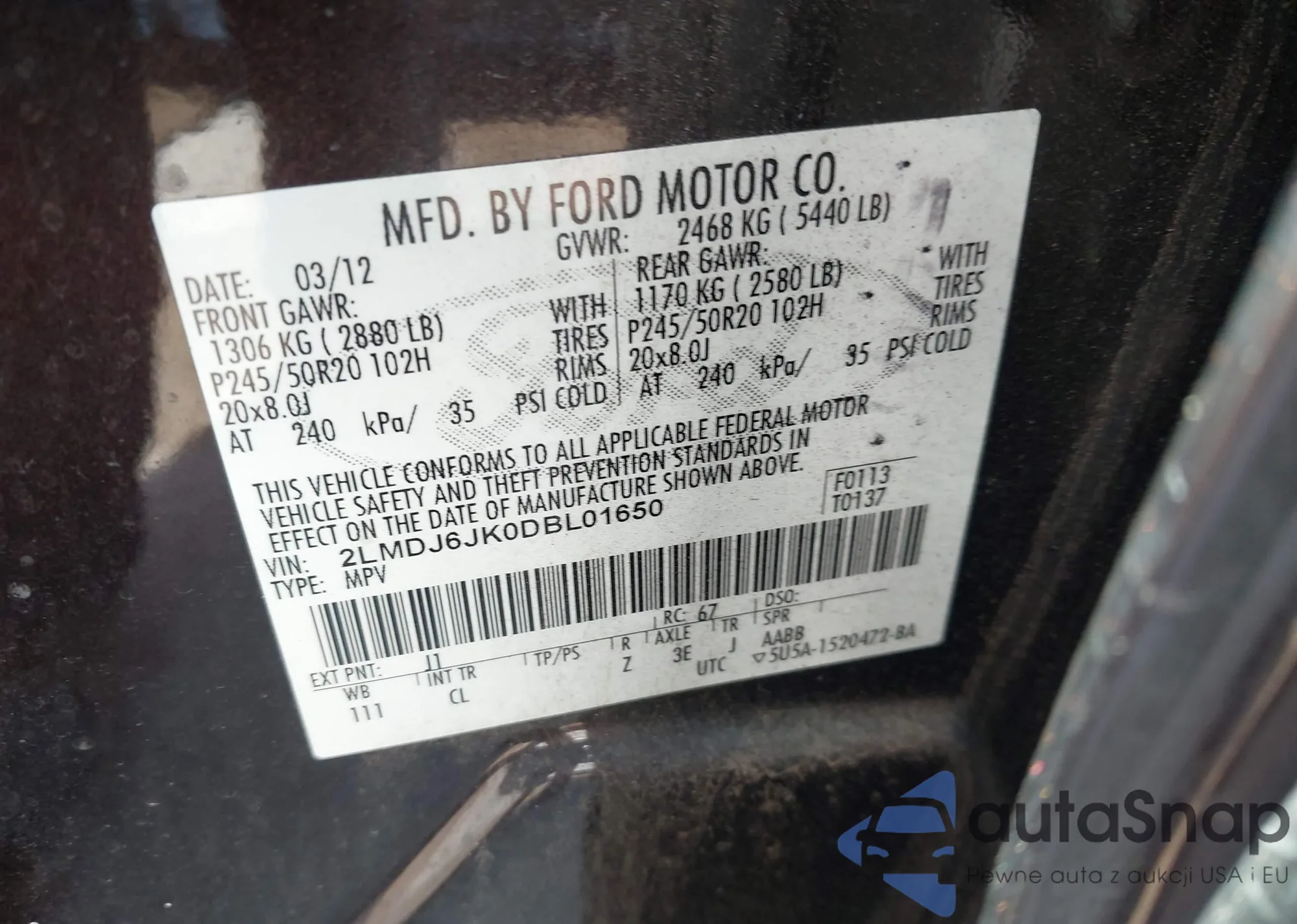 • VIN 2LMDJ6JK0DBL01650