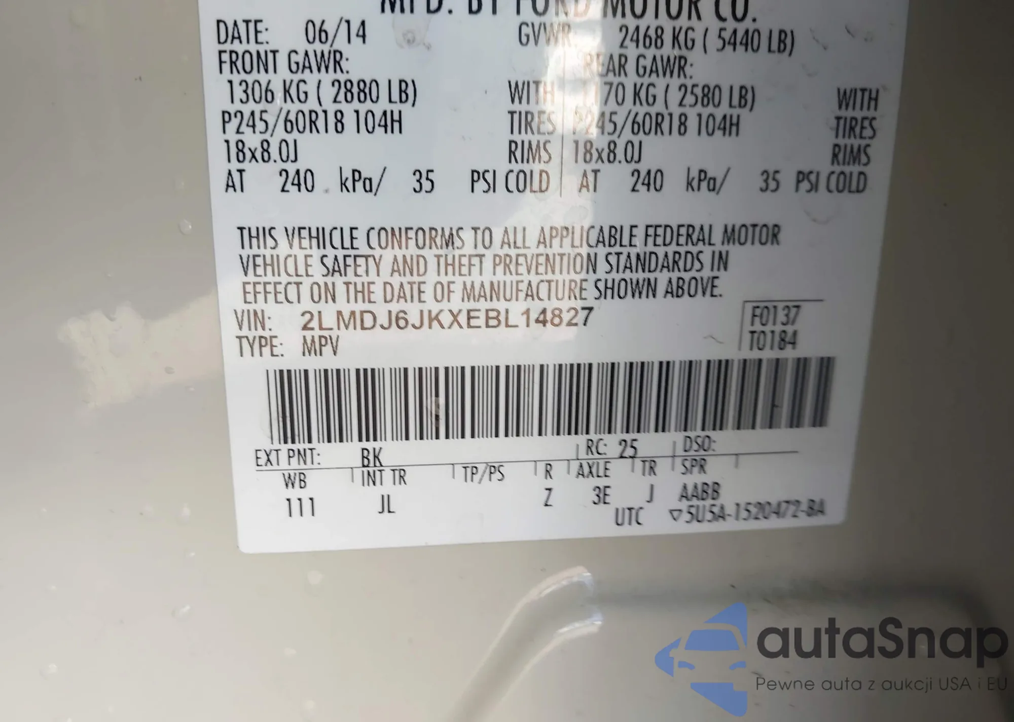 • VIN 2LMDJ6JKXEBL14827
