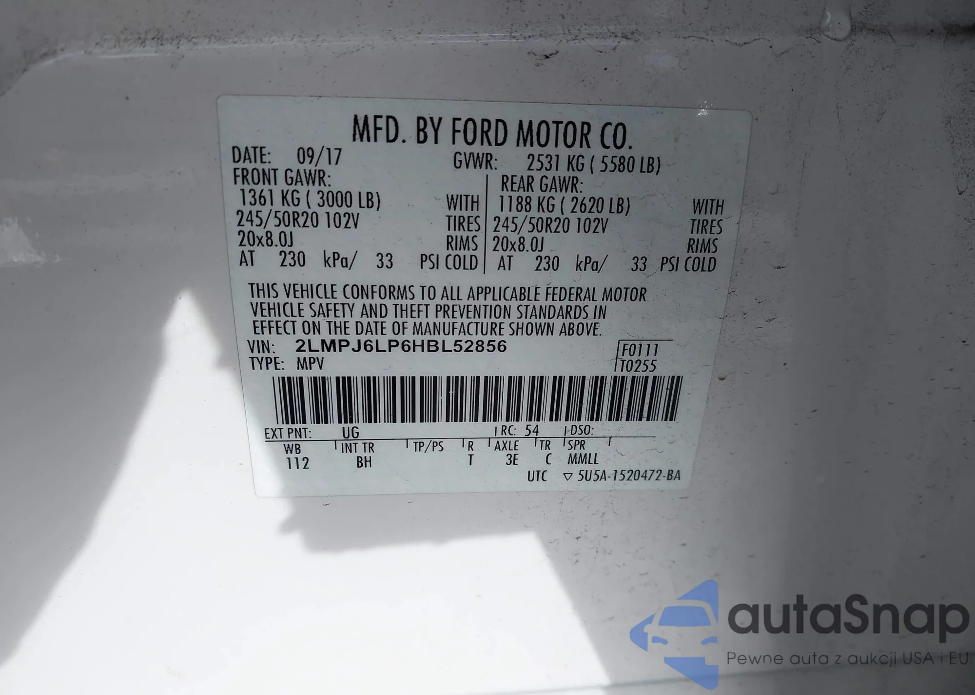 LOT: 44370731 VIN: 2LMPJ6LP6HBL52856