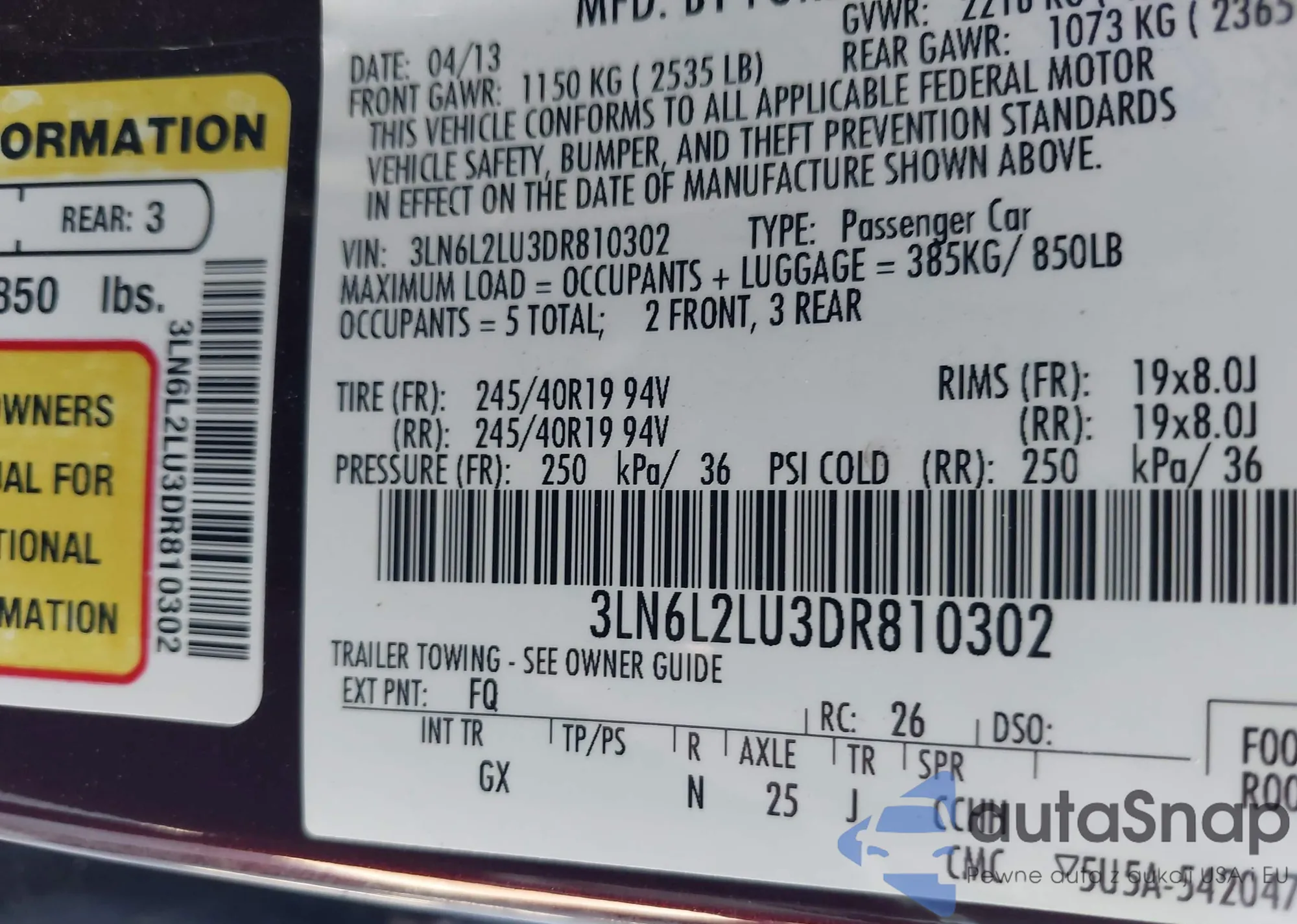 LOT: 44645236 VIN: 3LN6L2LU3DR810302