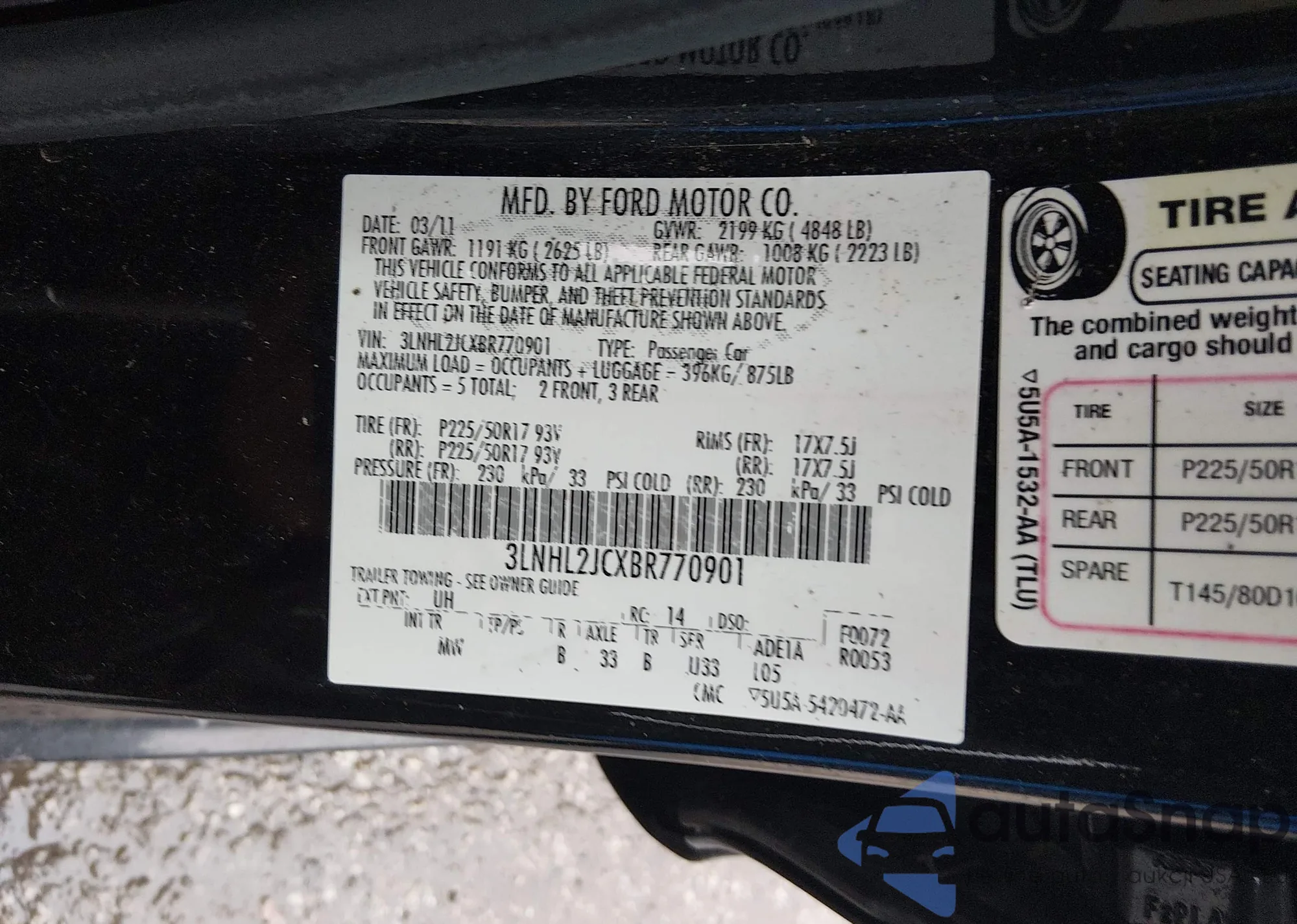 • VIN 3LNHL2JCXBR770901