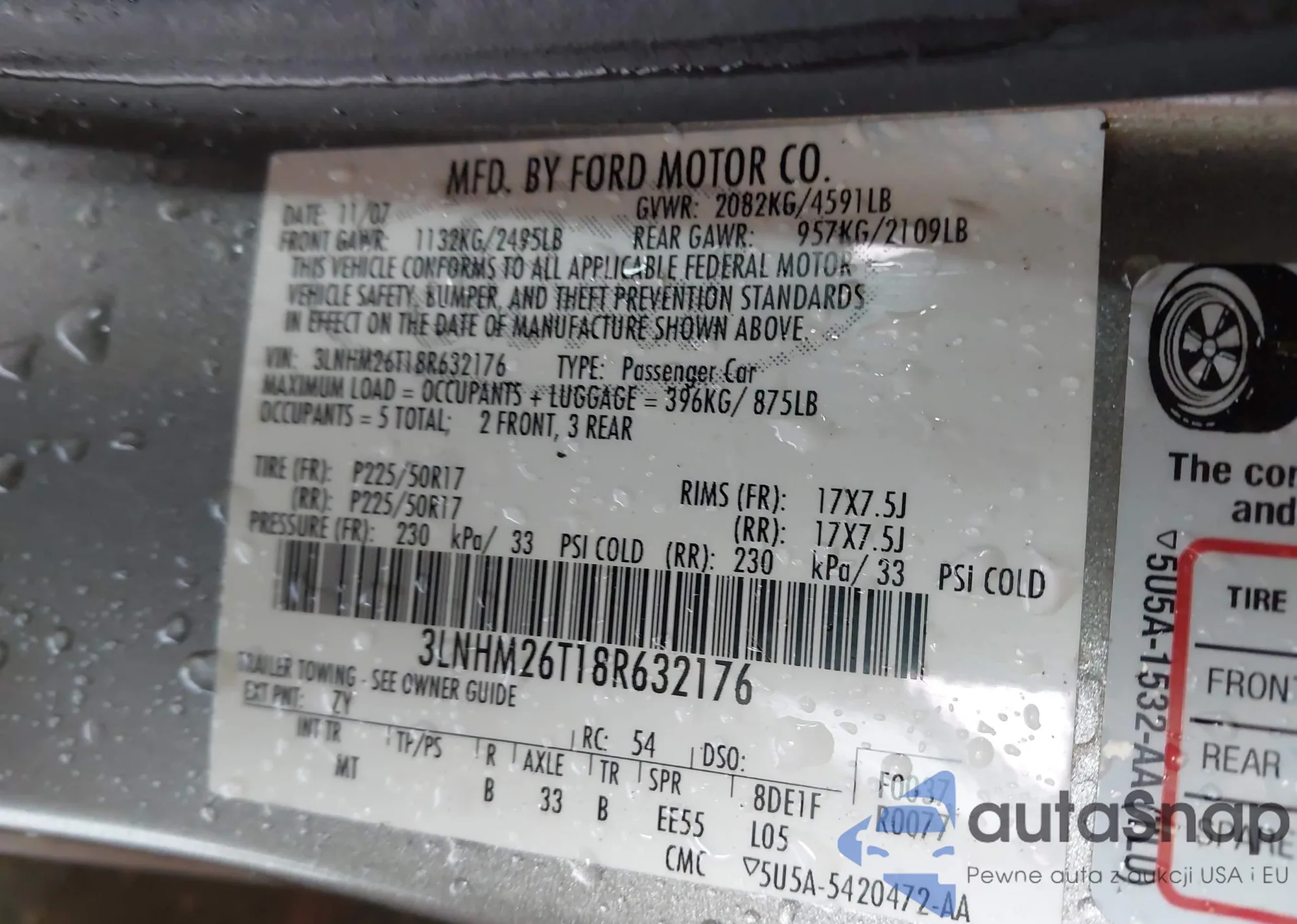 2008 Lincoln Mkz z USA, uszkodzony, nr VIN 3LNHM26T18R632176