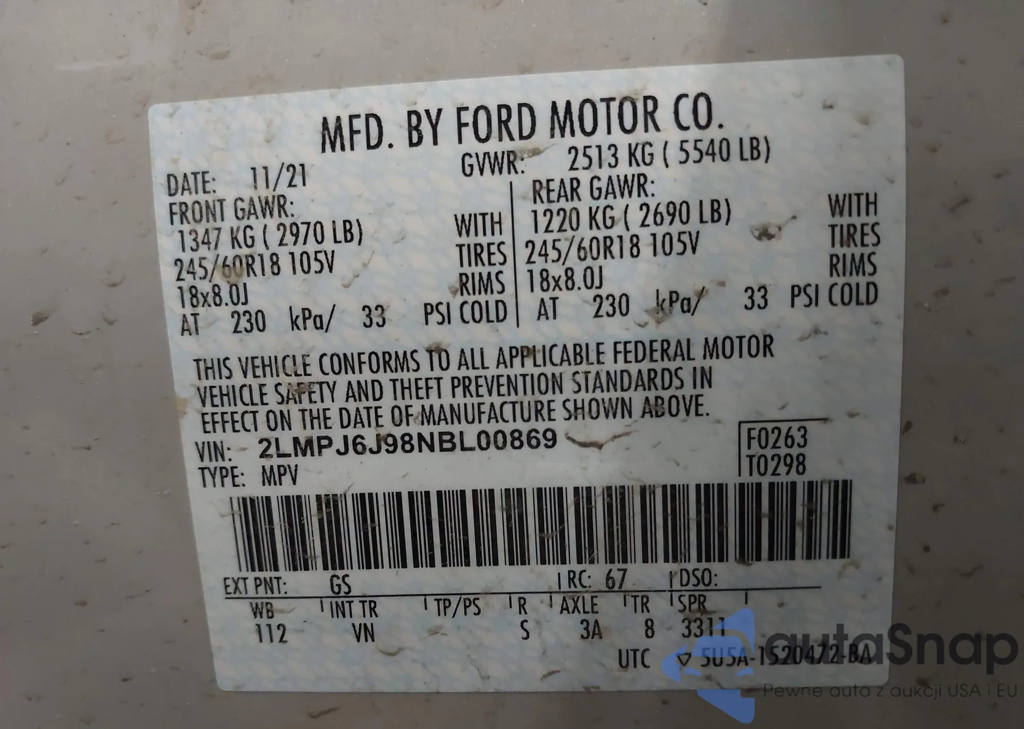 • VIN 2LMPJ6J98NBL00869