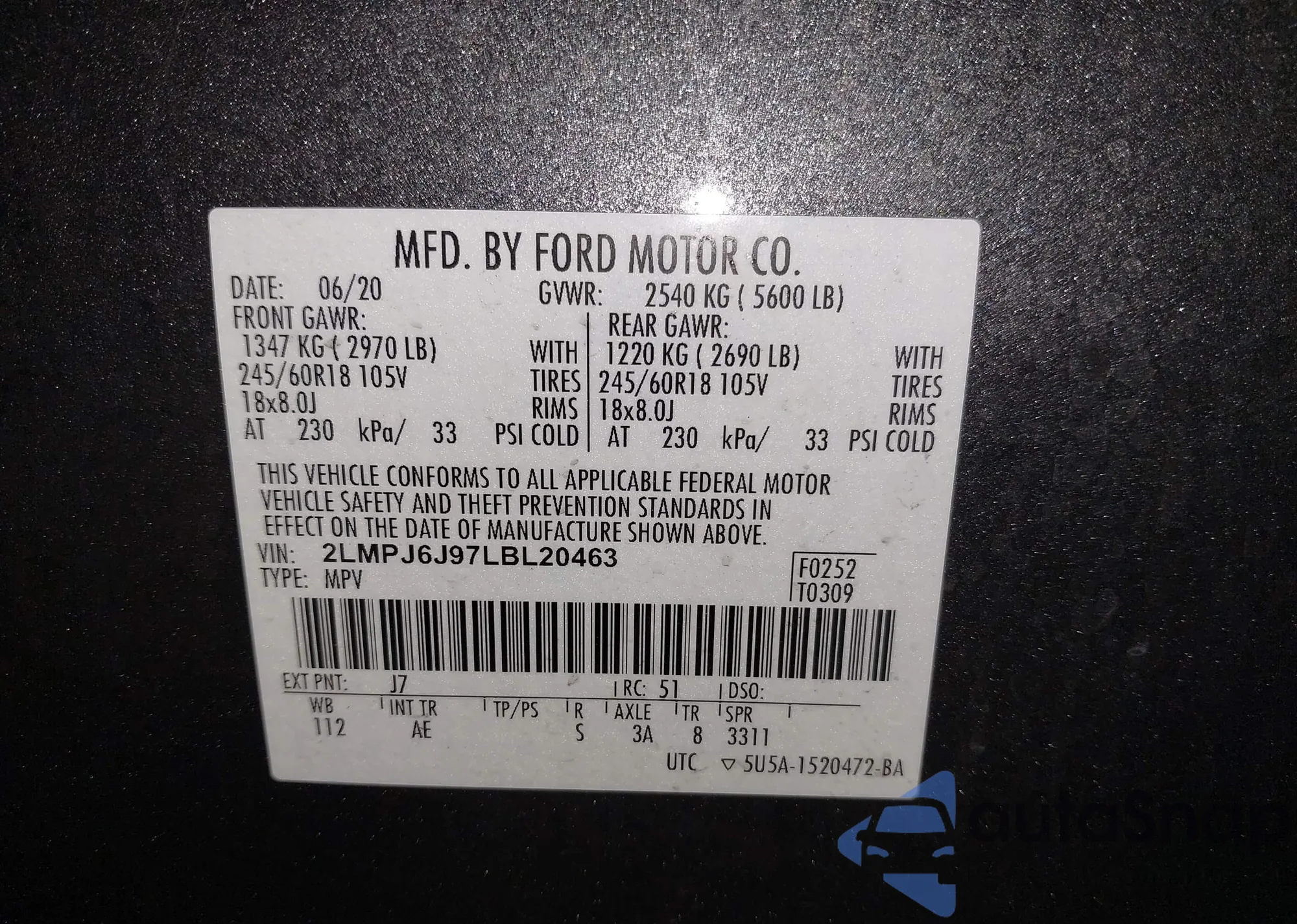 LOT: 44605652 VIN: 2LMPJ6J97LBL20463