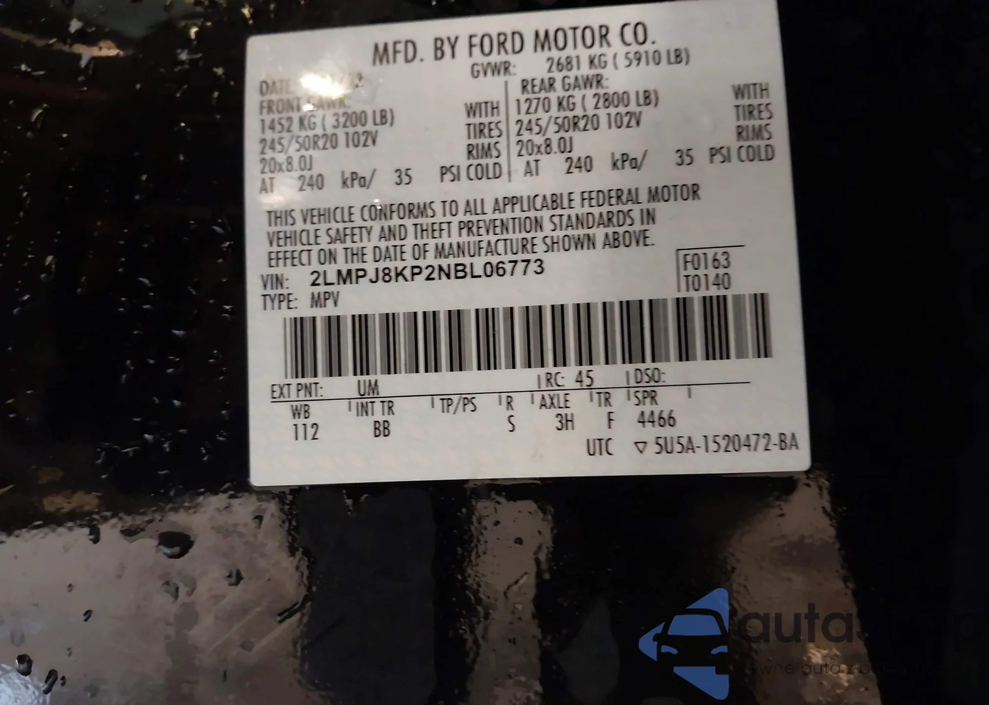 • VIN 2LMPJ8KP2NBL06773