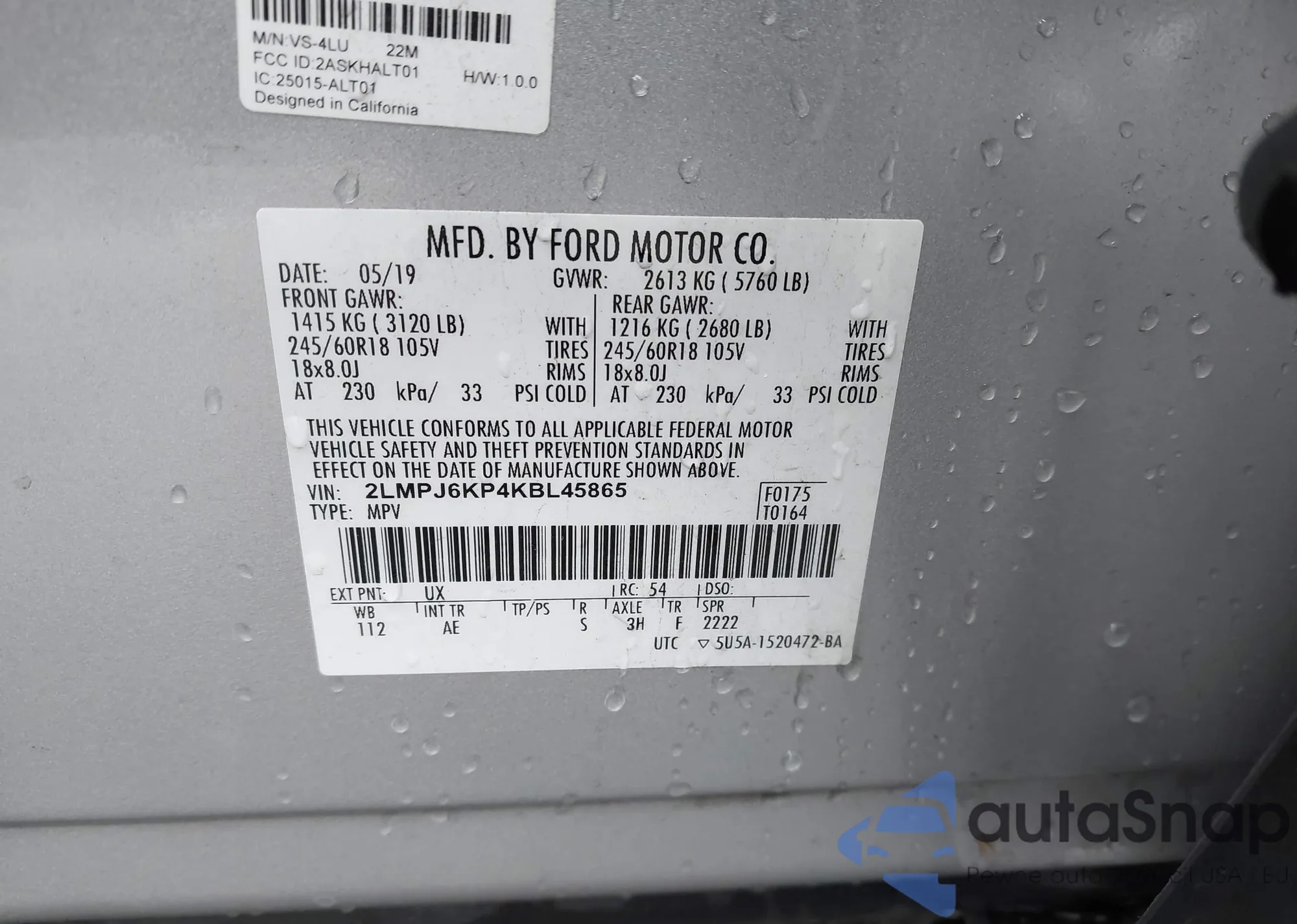 • VIN 2LMPJ6KP4KBL45865