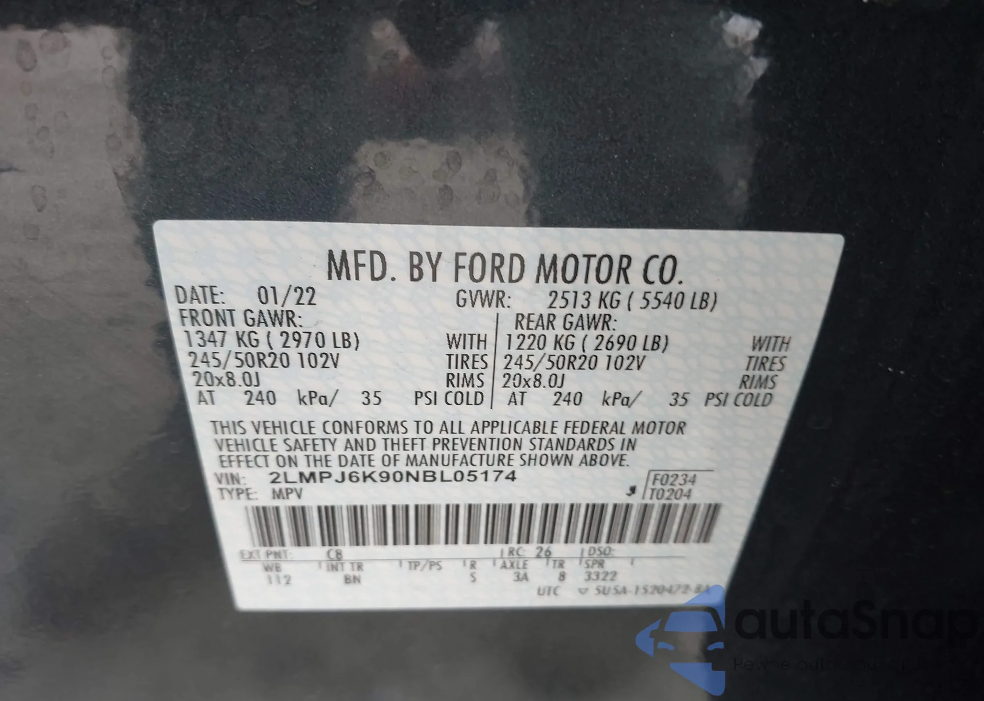 • VIN 2LMPJ6K90NBL05174
