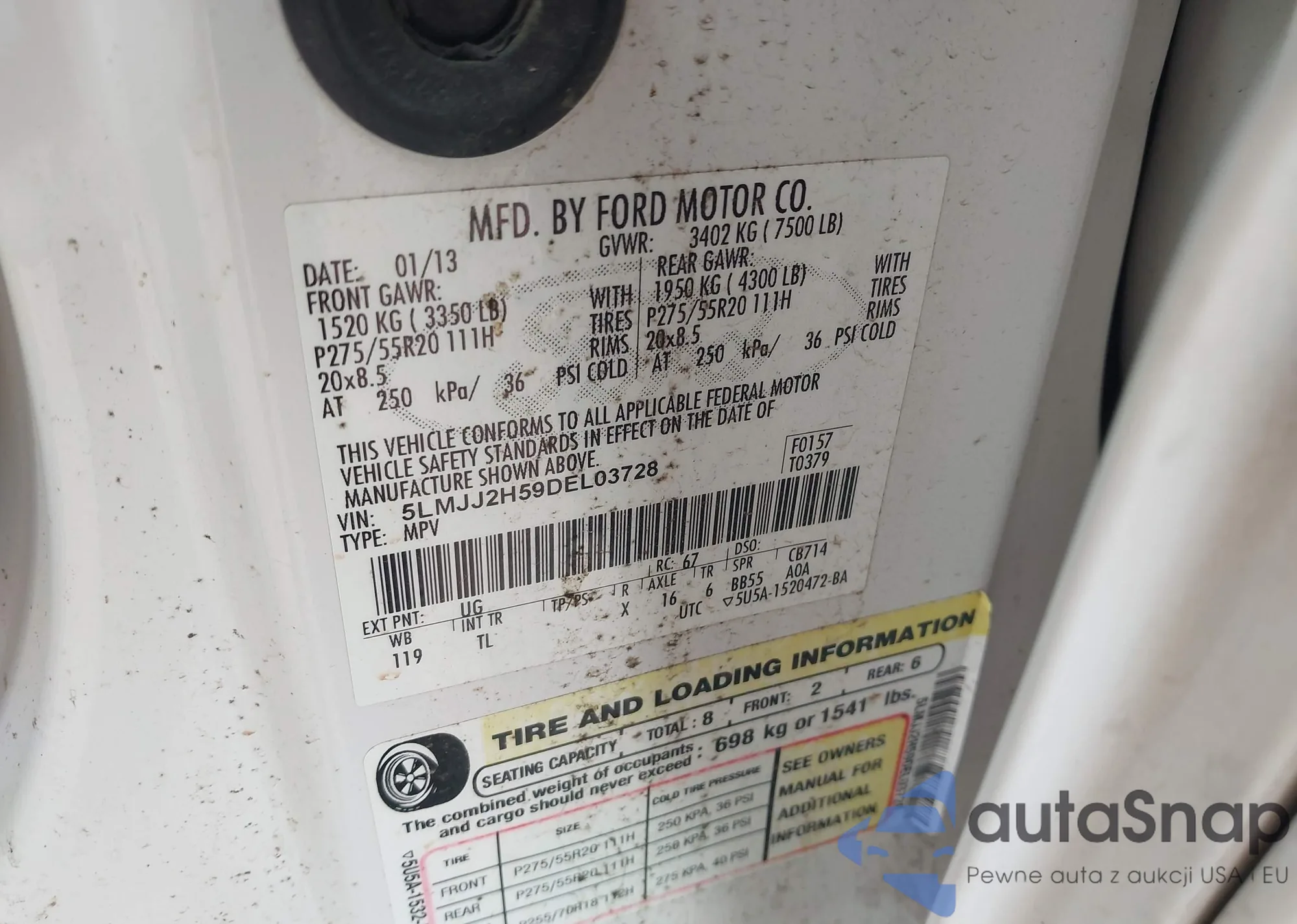 • VIN 5LMJJ2H59DEL03728