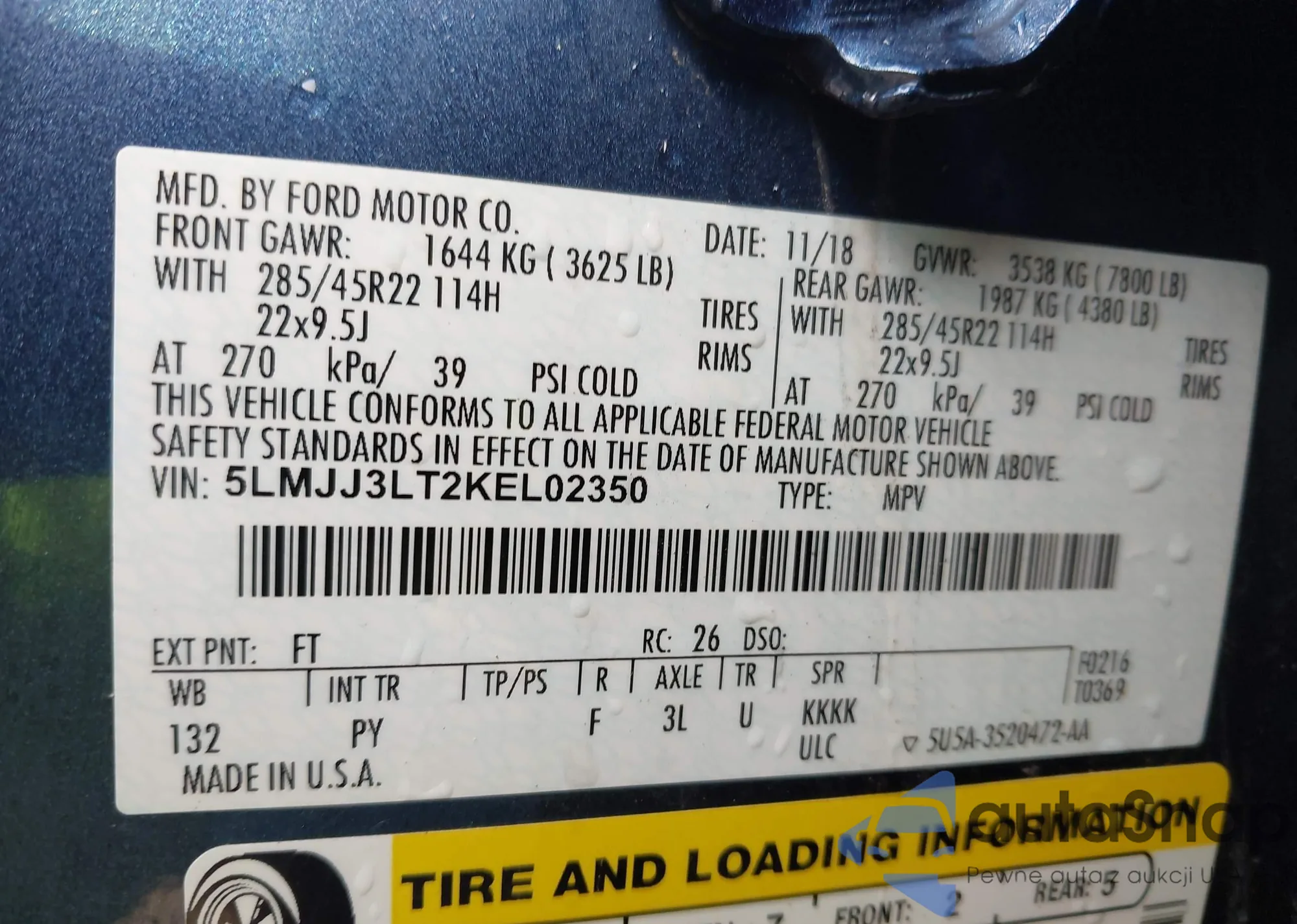 • VIN 5LMJJ3LT2KEL02350
