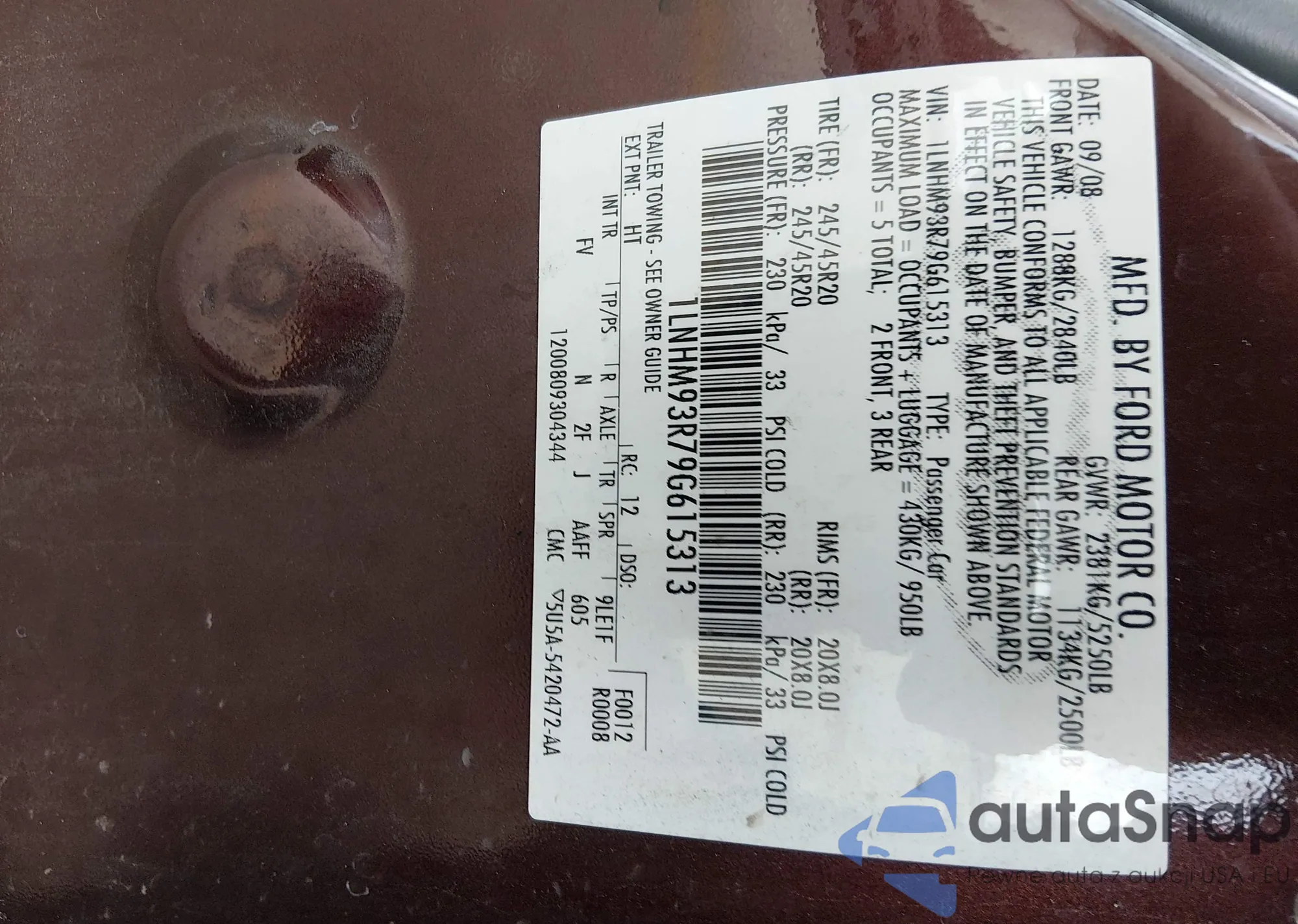 LOT: 44225952 VIN: 5LMFU27558LJ03316