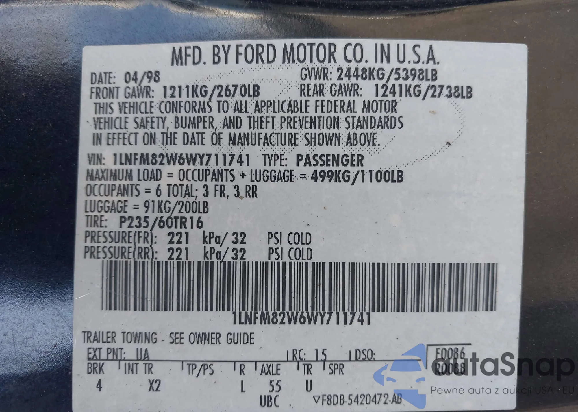 • VIN 1LNFM82W6WY711741