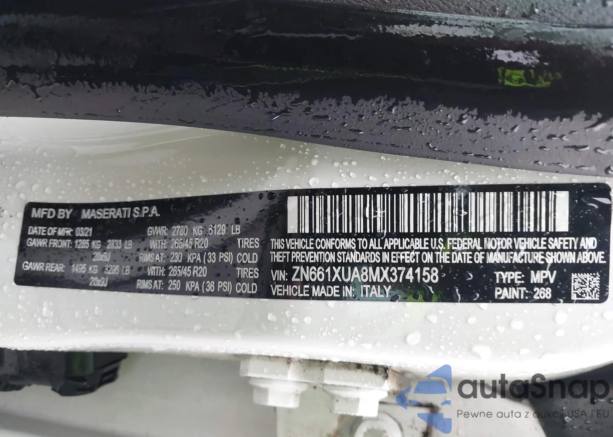 LOT: 42117823 VIN: ZN661XUA8MX374158