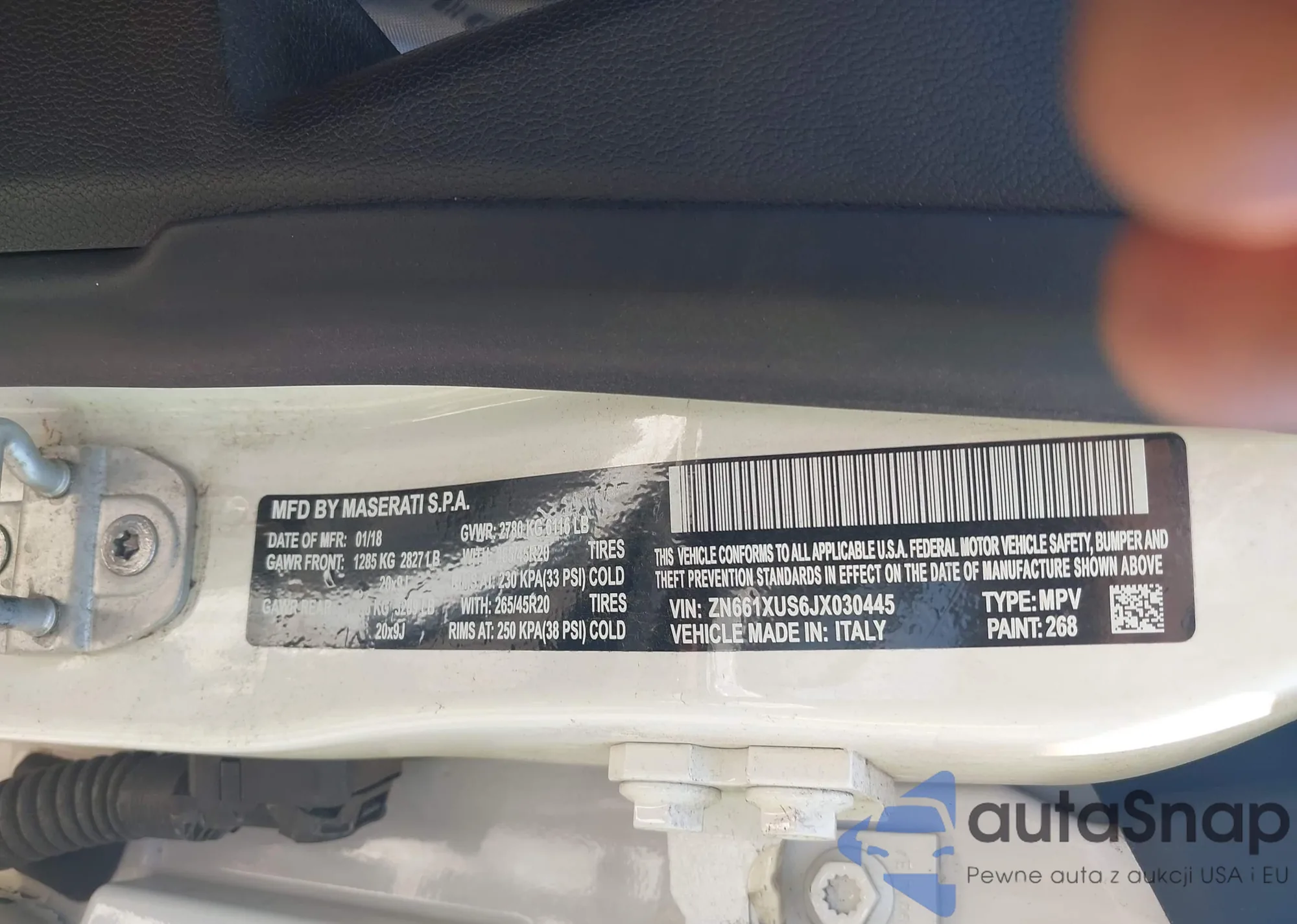 LOT: 42482897 VIN: ZN661XUS6JX259627