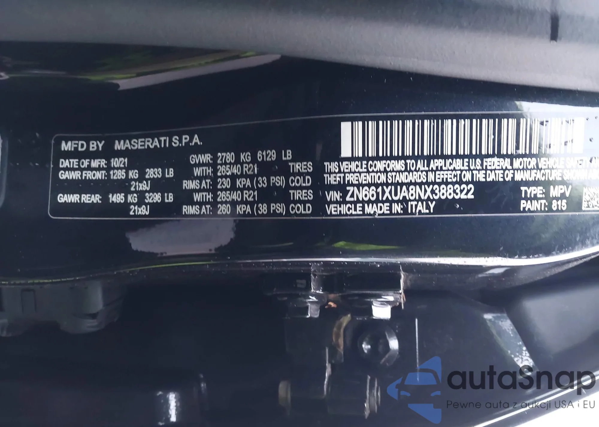 LOT: 43374239 VIN: ZN661XUL2MX359608