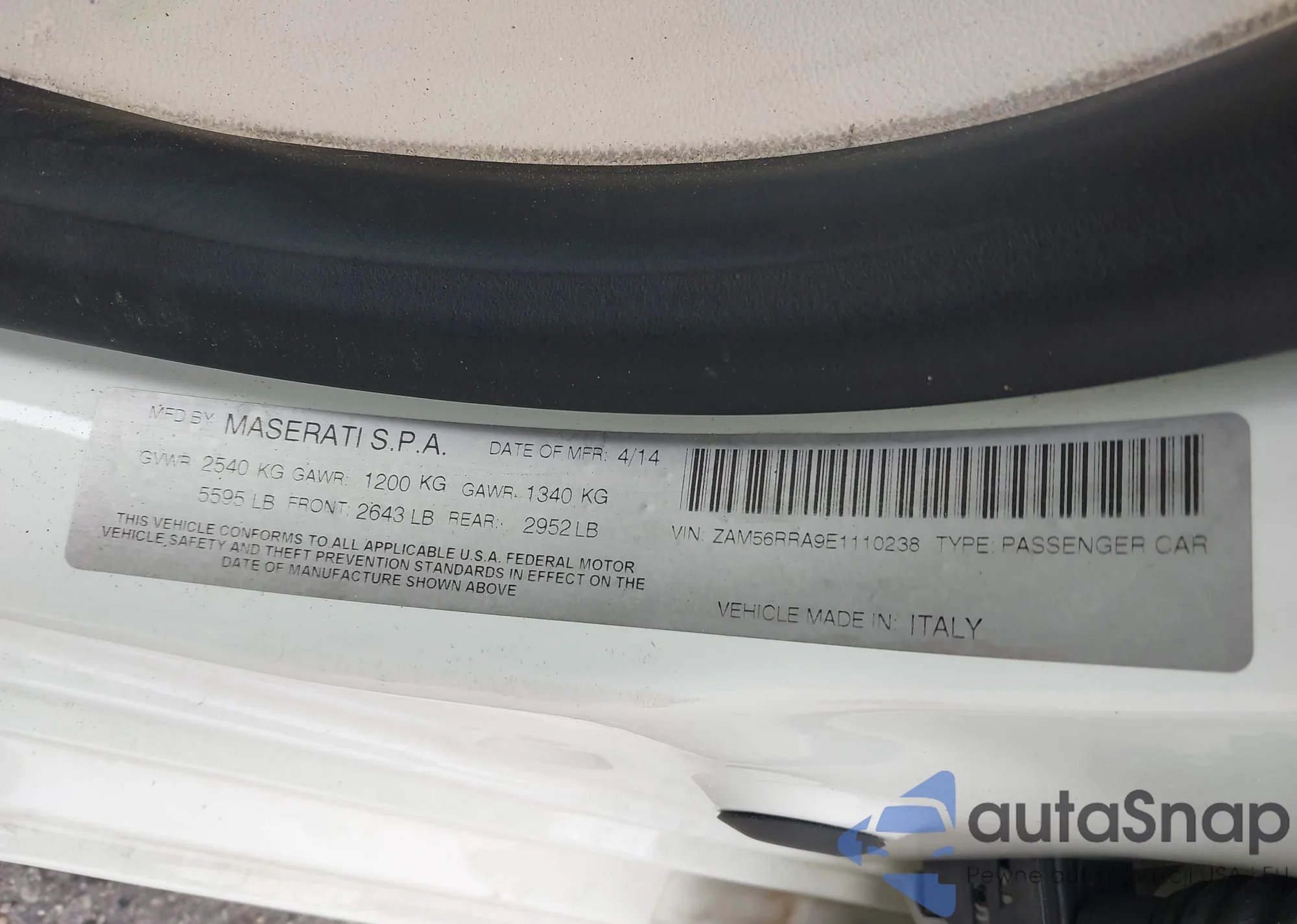 LOT: 44068513 VIN: ZAM56RRA9E1110238