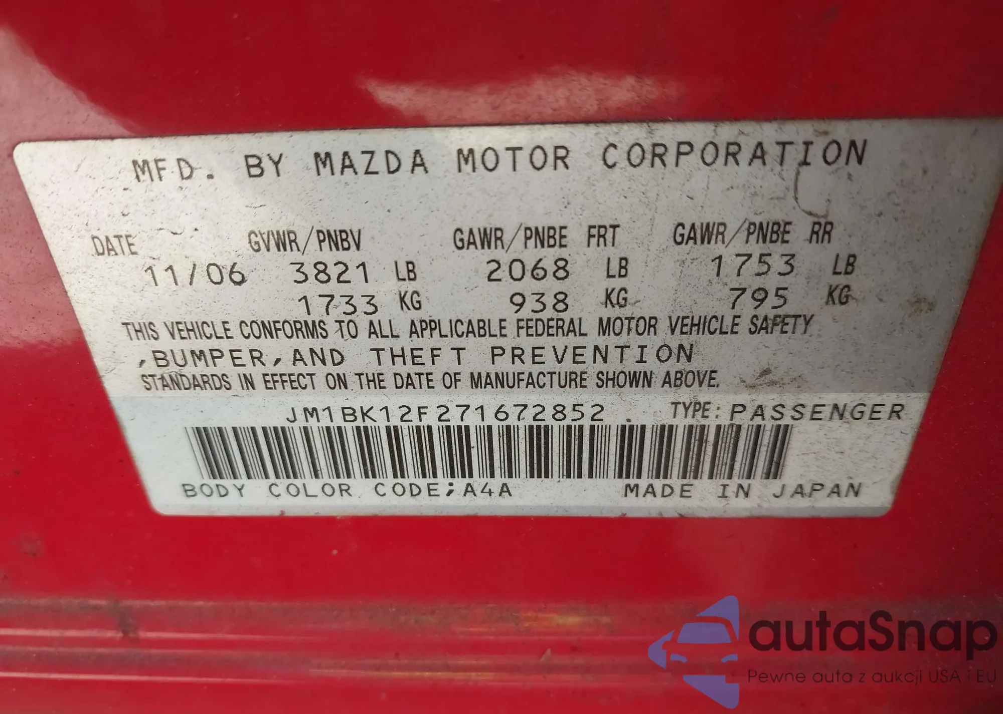 Kup Mazda 3 I (BK) z USA