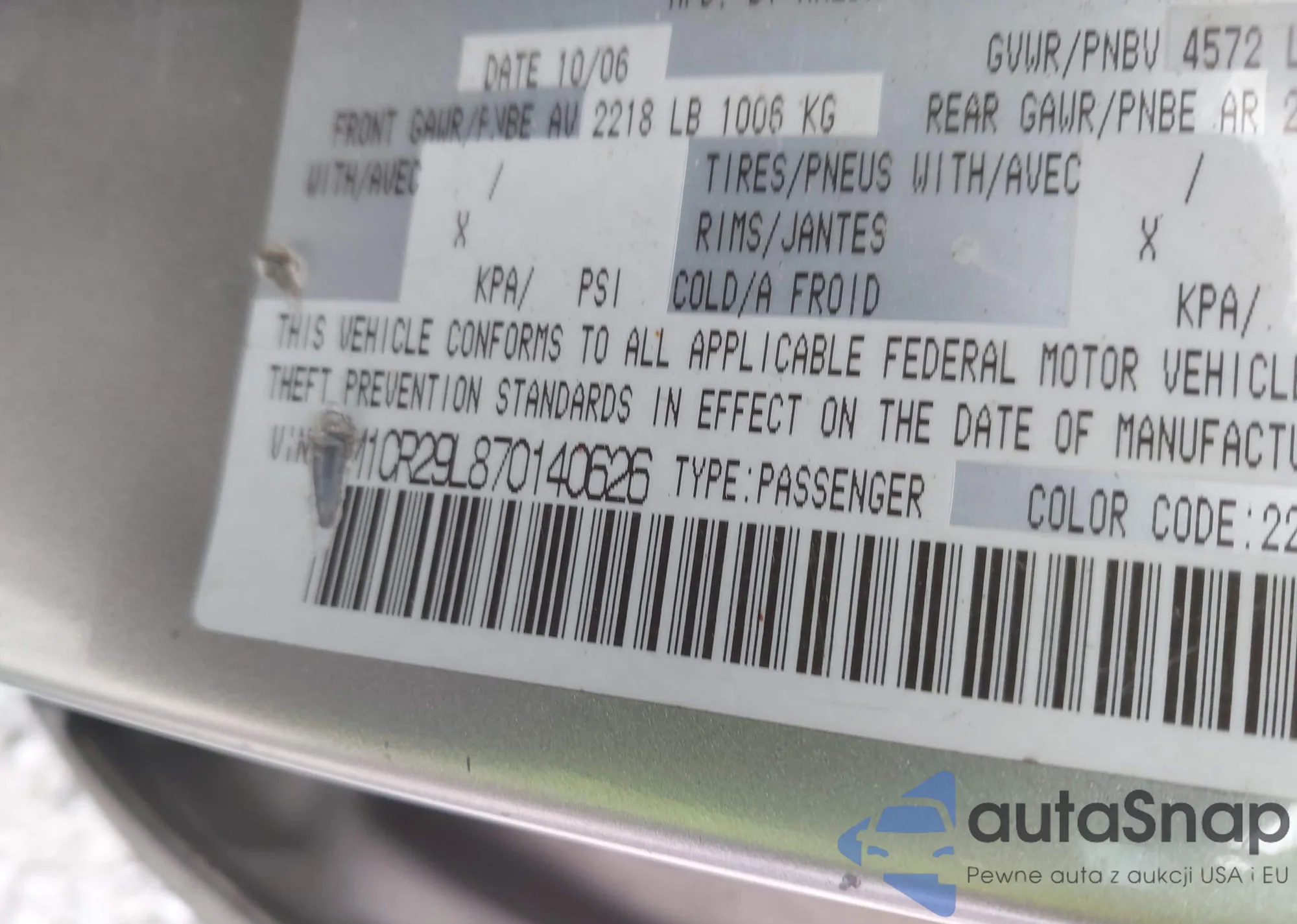 LOT: 44220792 VIN: JM1CR29L870140626