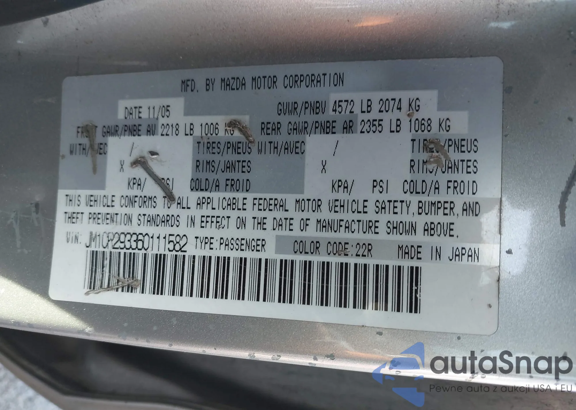 LOT: 44607463 VIN: JM1CR293360111582