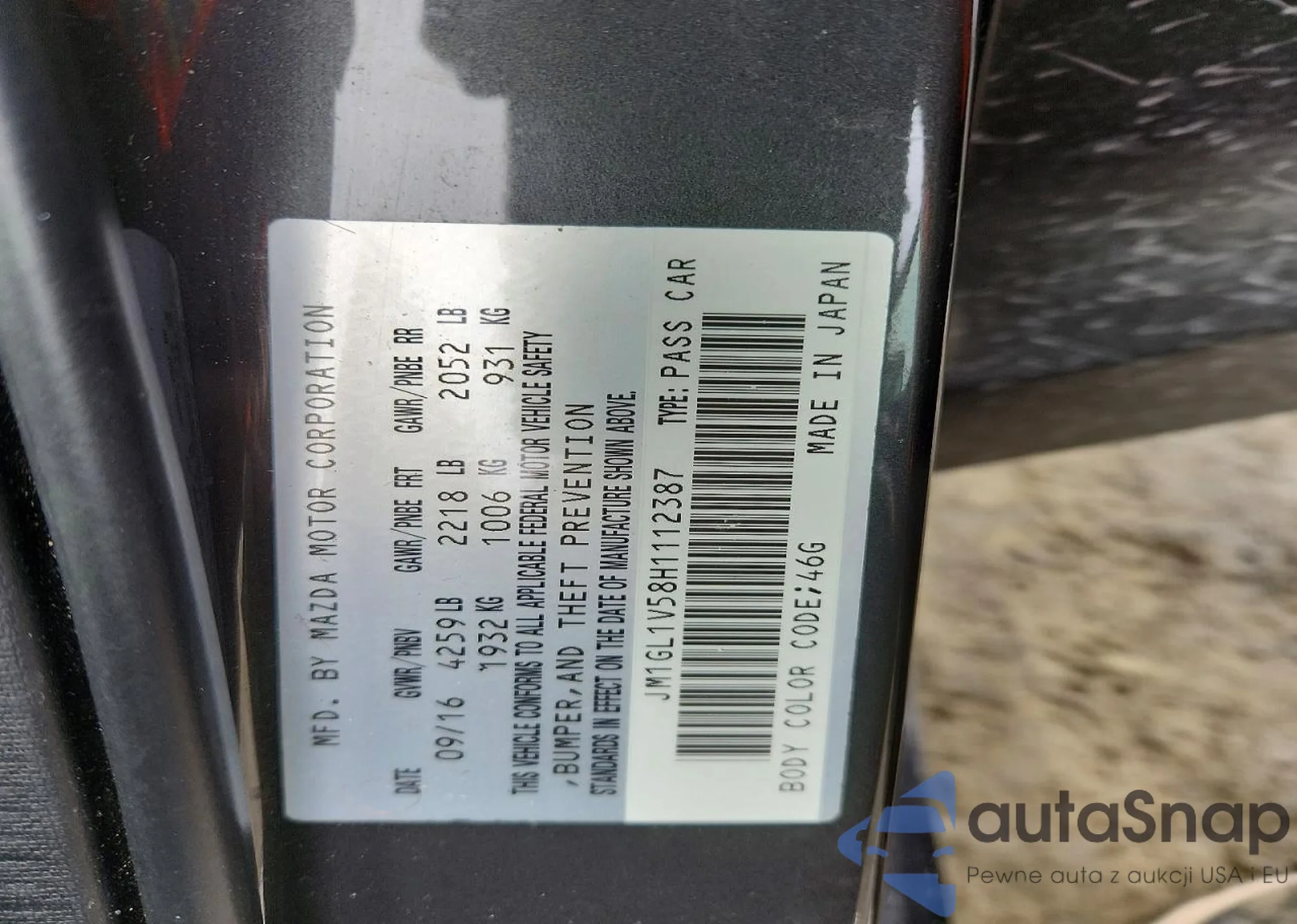 LOT: 76608655 VIN: JM1GL1V58H1112387