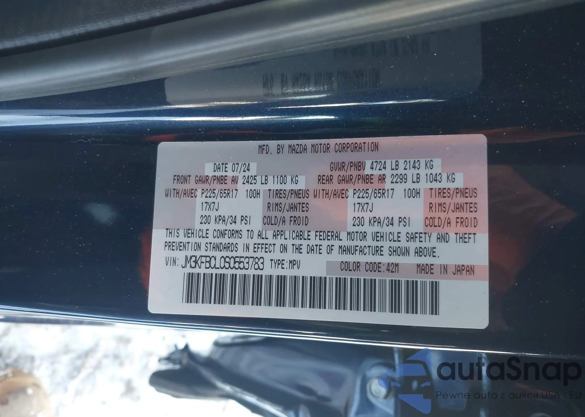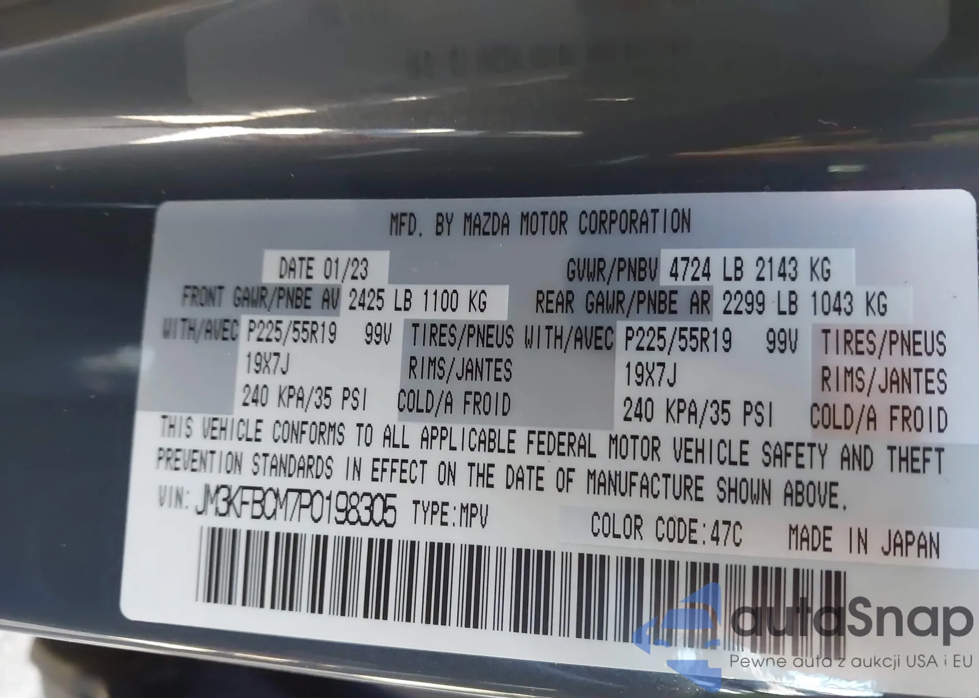 LOT: 44153242 VIN: JM3KFBCM7P0198305