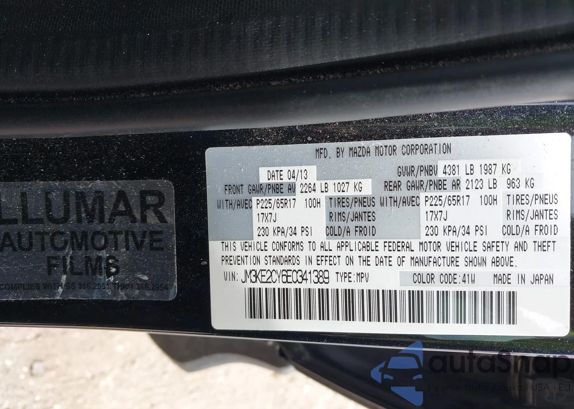LOT: 44349781 VIN: JM3KE2CY6E0341389