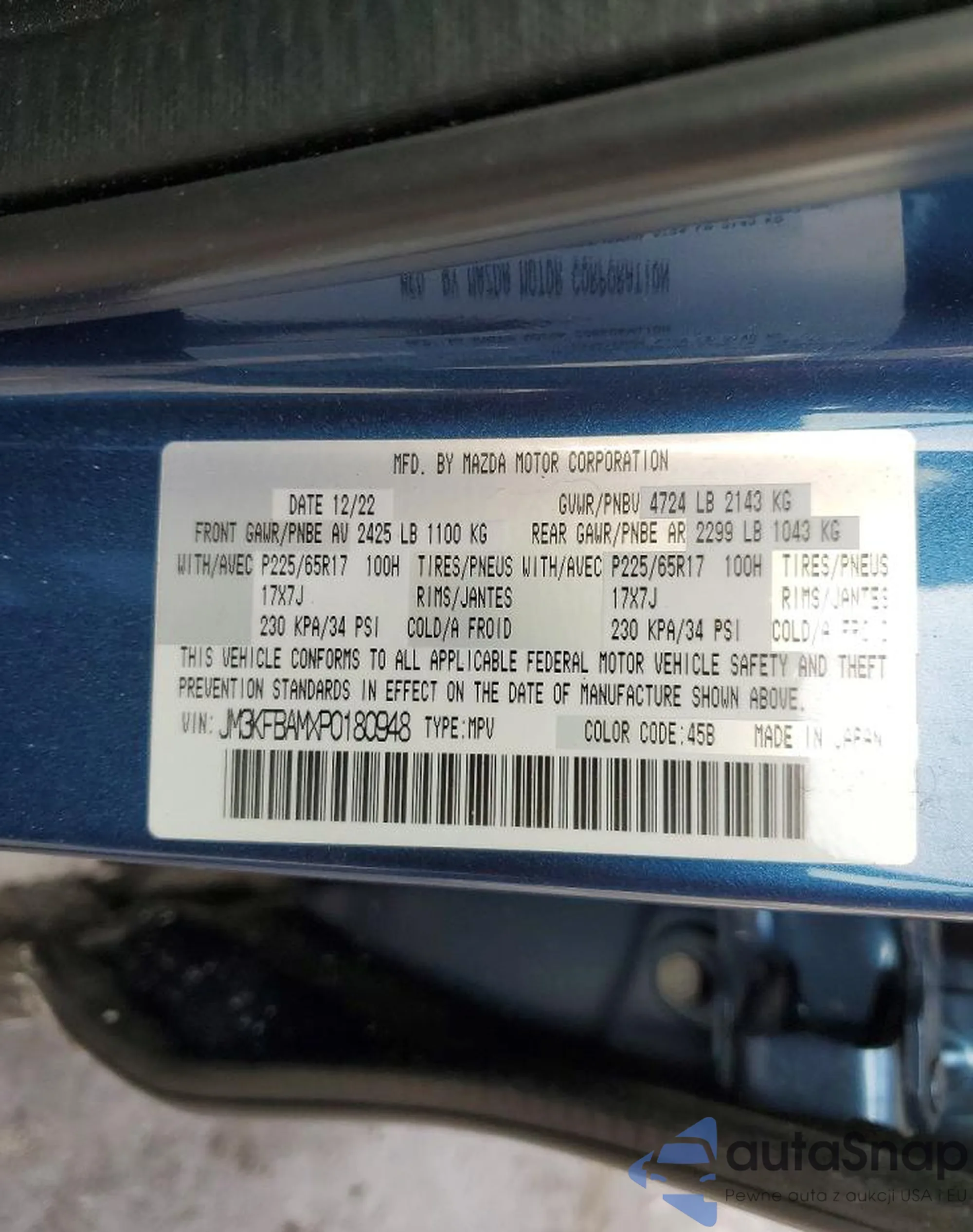 LOT: 74508135 VIN: JM3KFBAMXP0180948