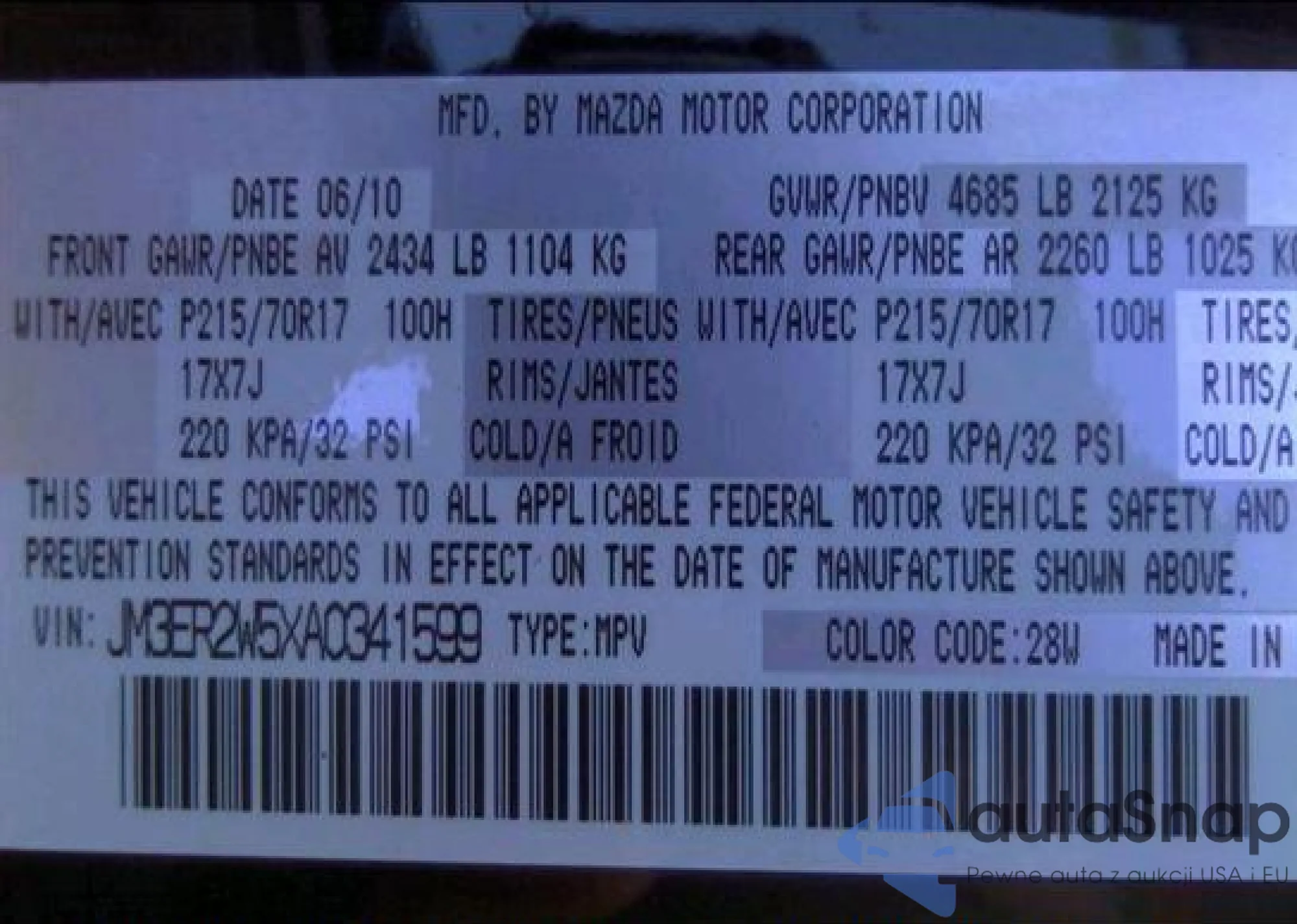 • VIN JM3ER2W5XA0341599
