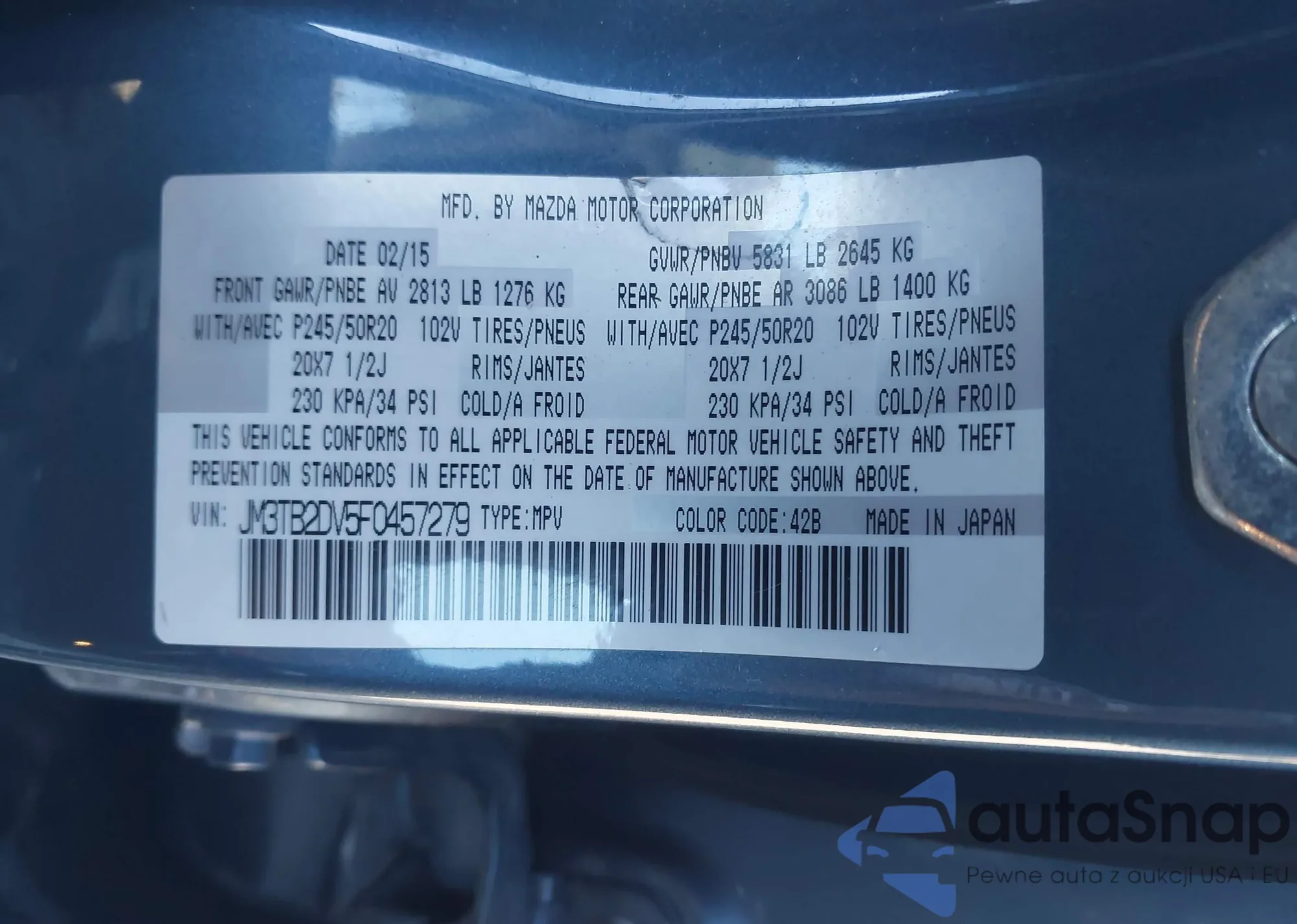• VIN JM3TB2DV5F0457279