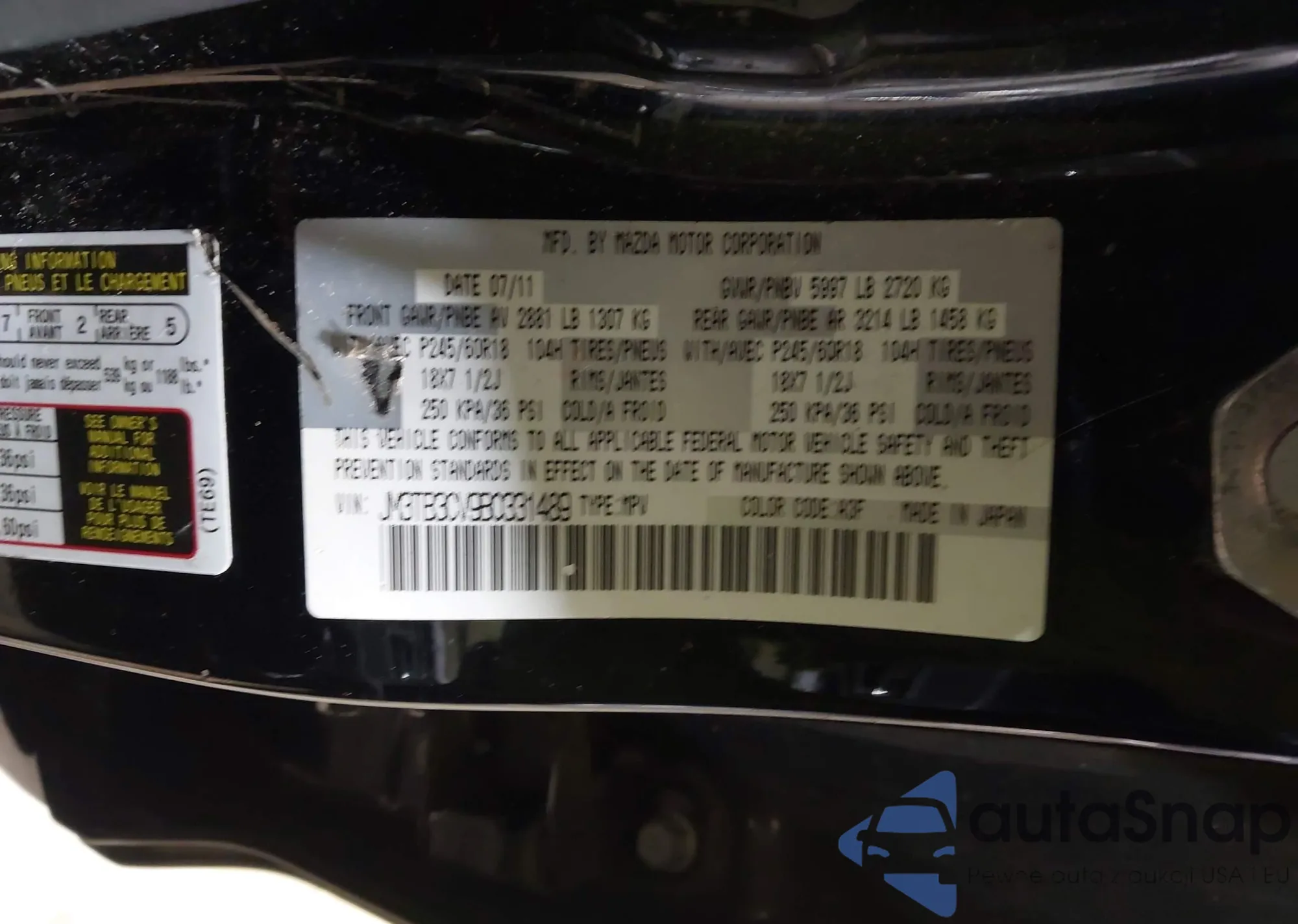 • VIN JM3TB3CV9B0331489