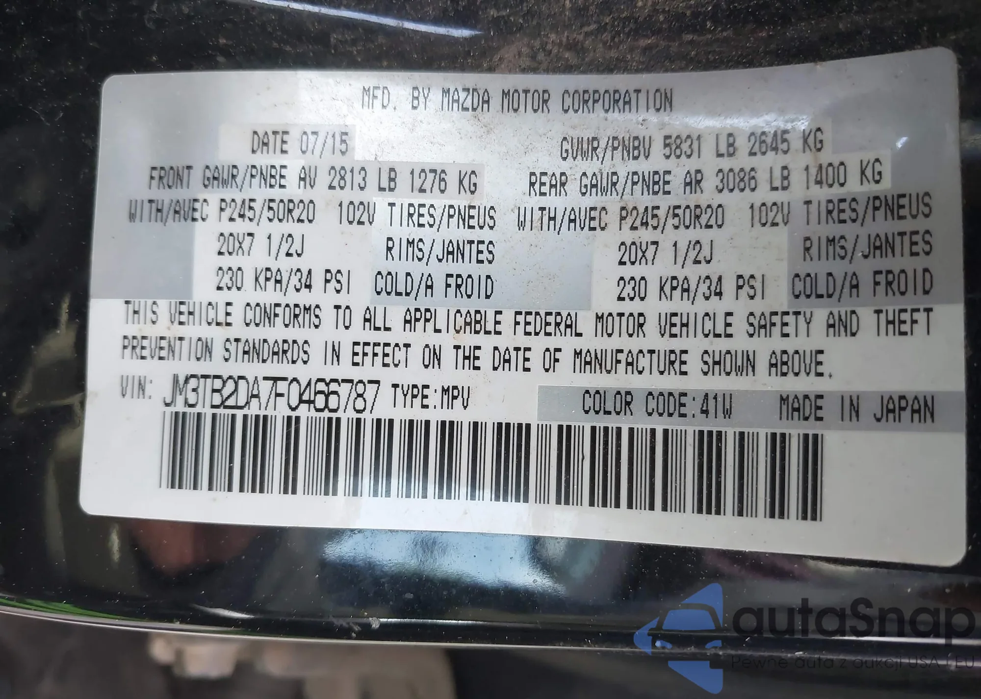 LOT: 44146181 VIN: JM3TB2DA7F0466787