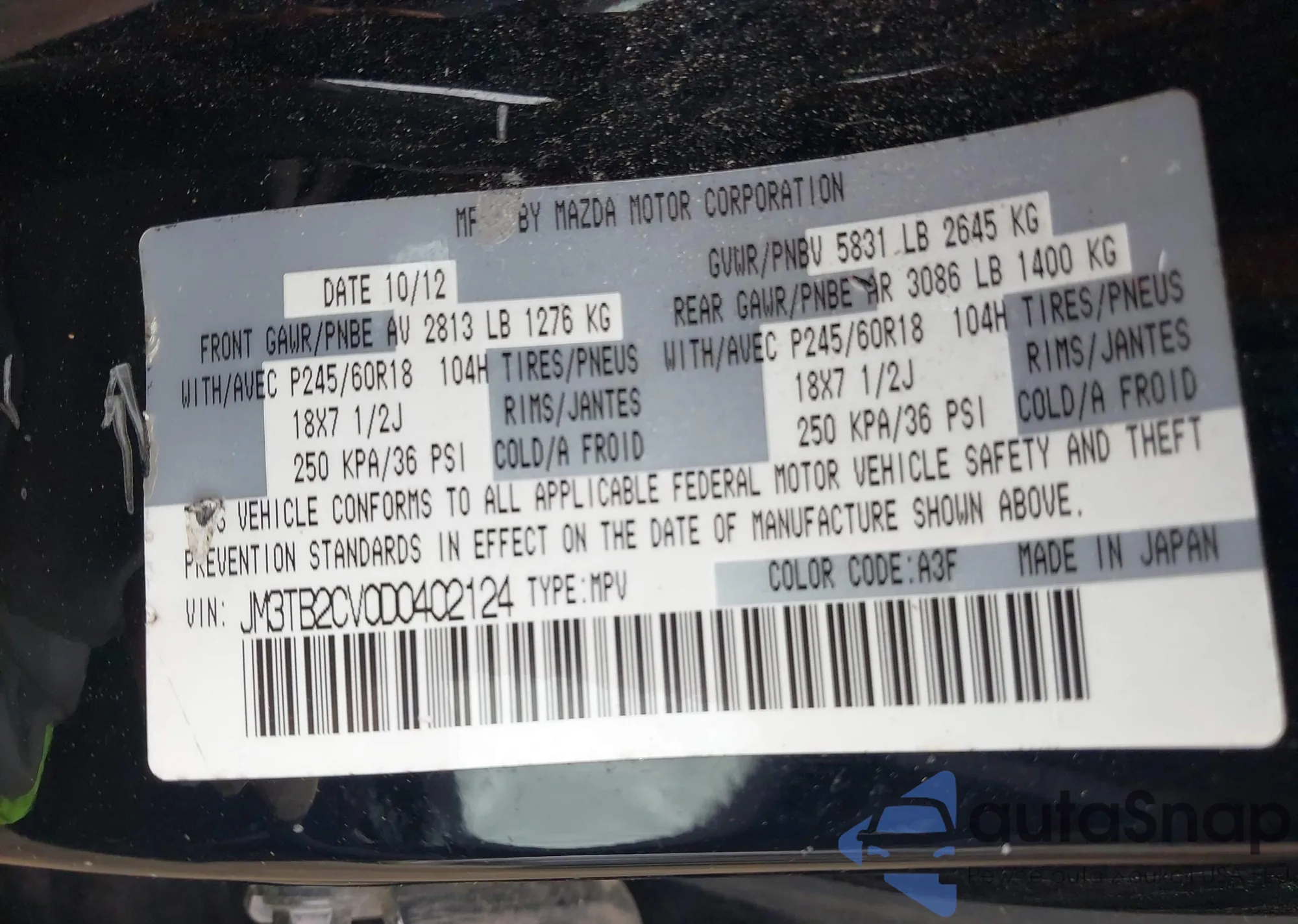 • VIN JM3TB2CV0D0402124
