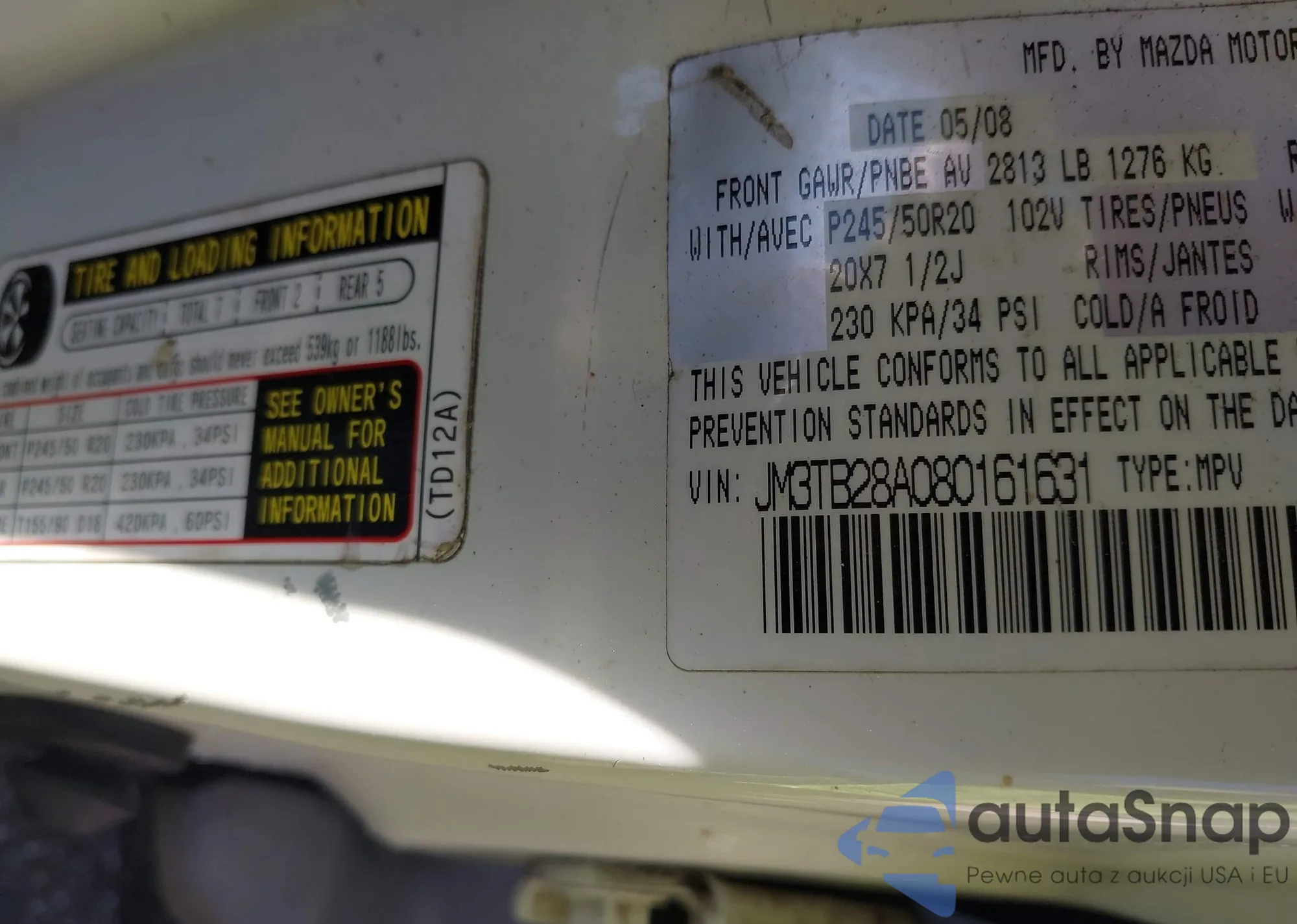 • VIN JM3TB28A080161631